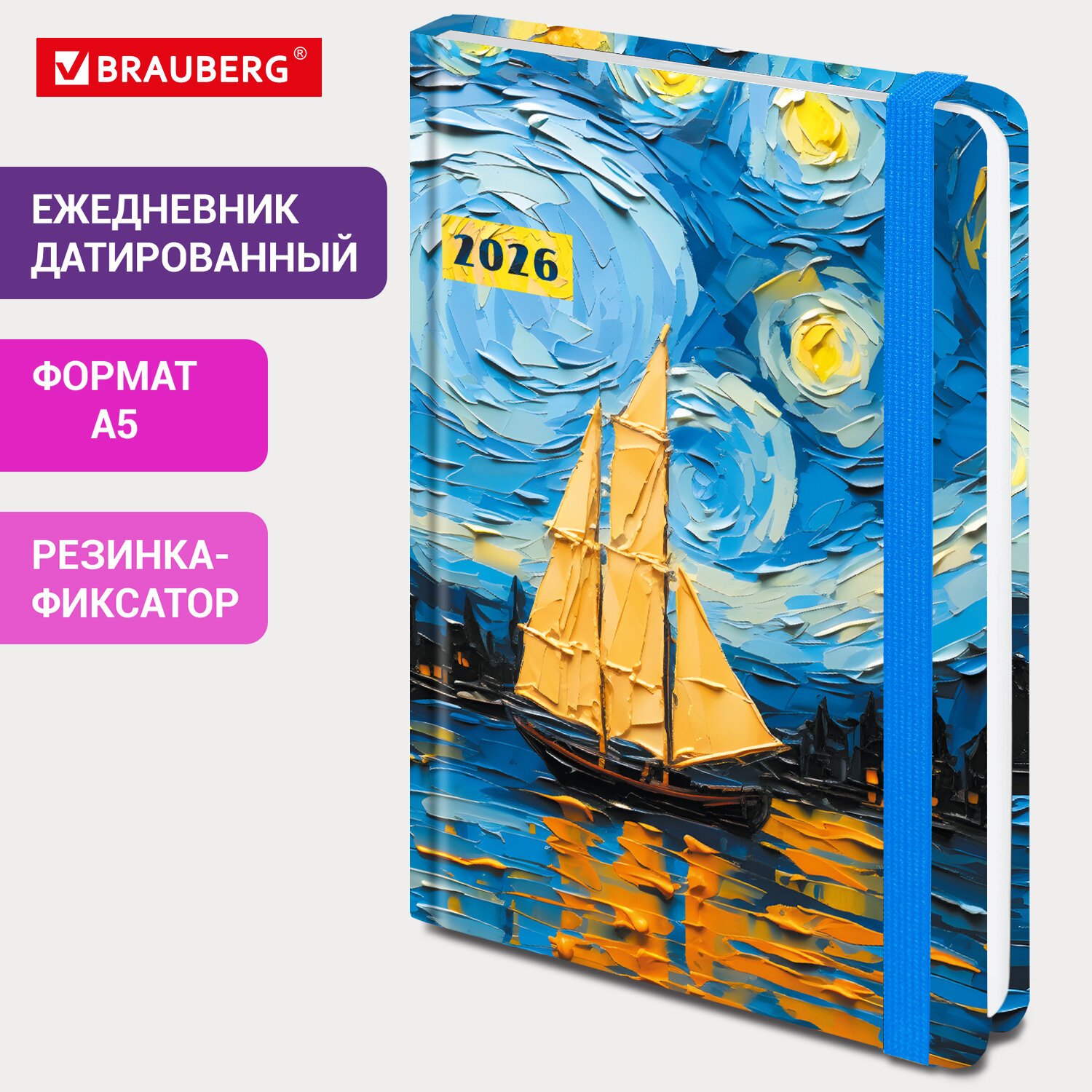 Датированный ежедневник с резинкой BRAUBERG "Живопись" подходит тем, кто предпочитает продуманное планирование спонтанным решениям.