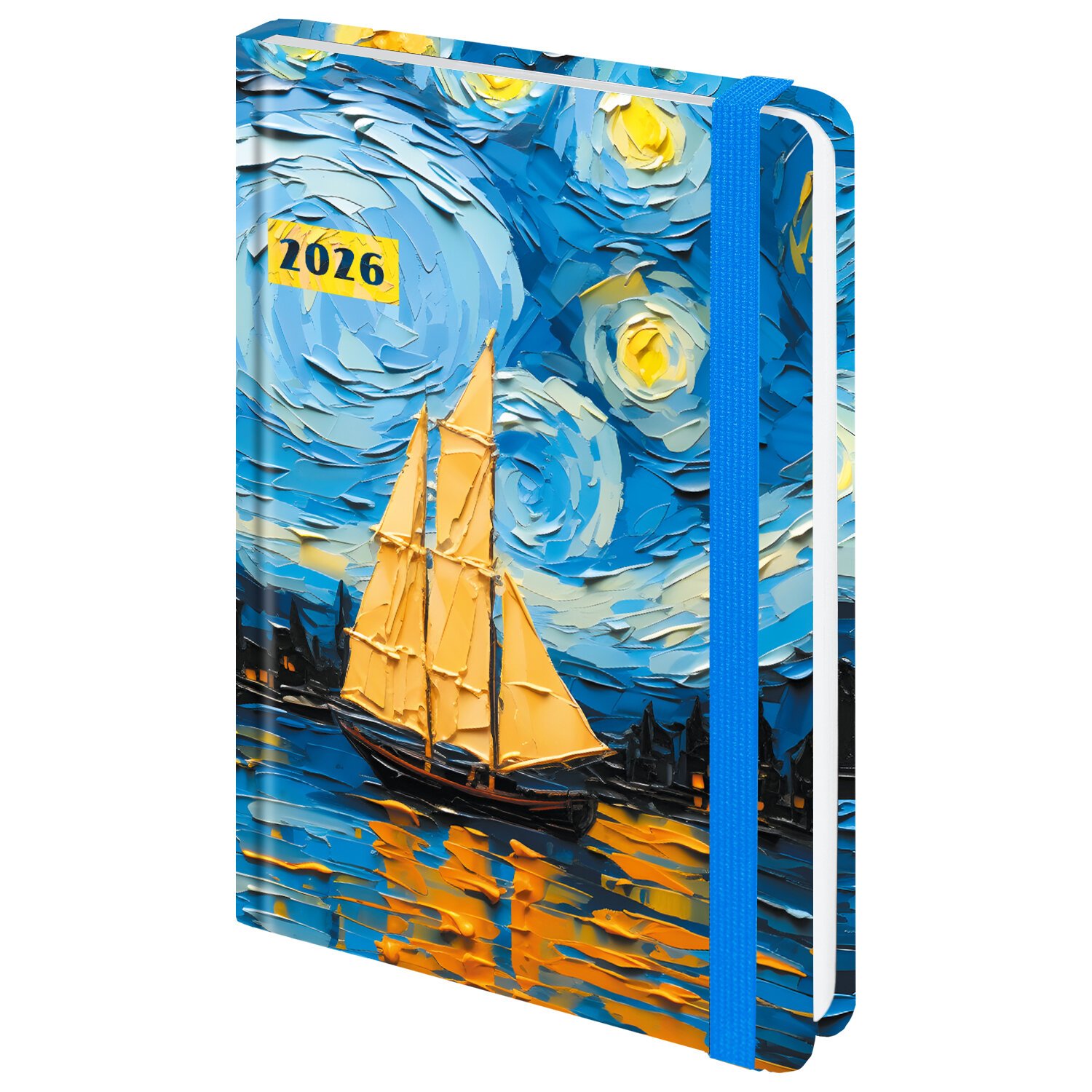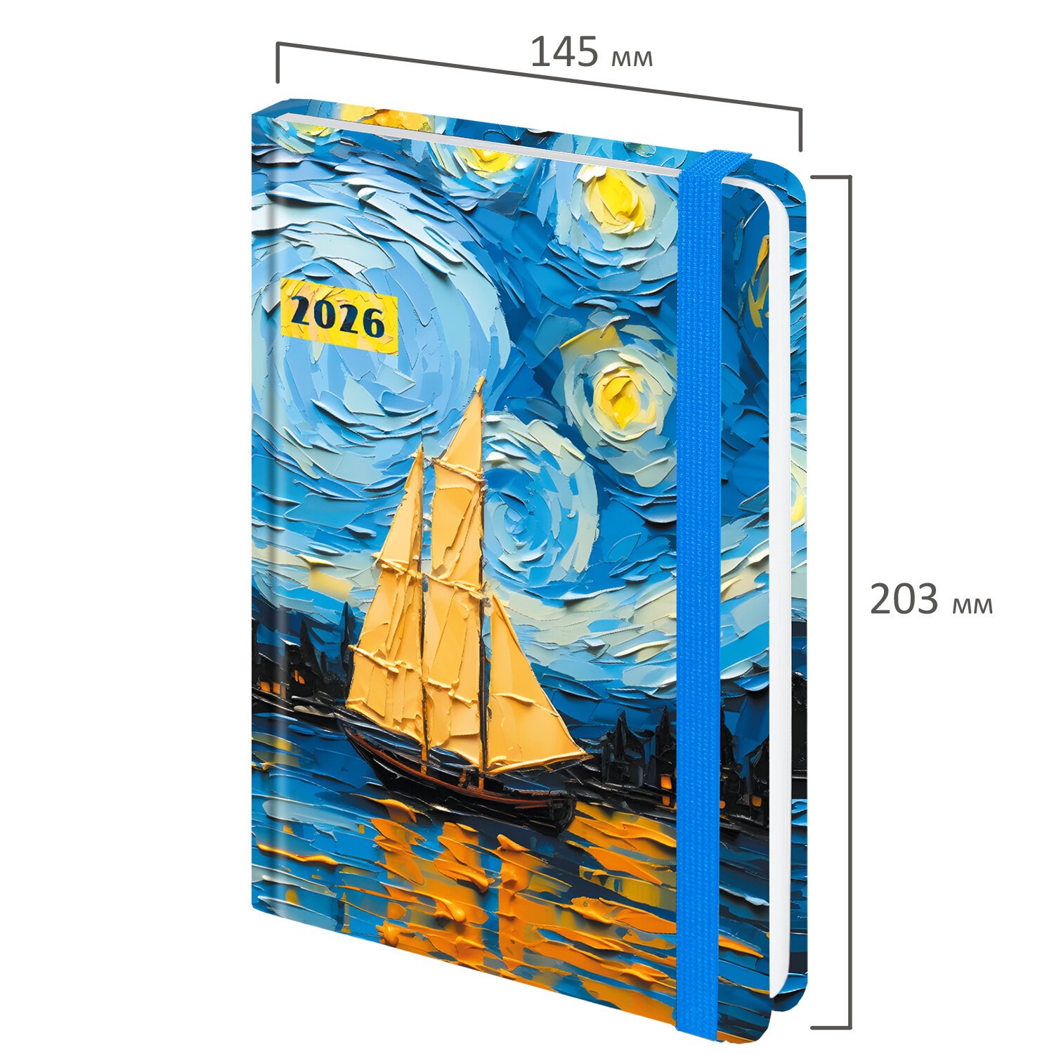Ежедневник датированный 2026 с резинкой 145х203 мм, А5, BRAUBERG, твердый, фольга, "Живопись", 117342