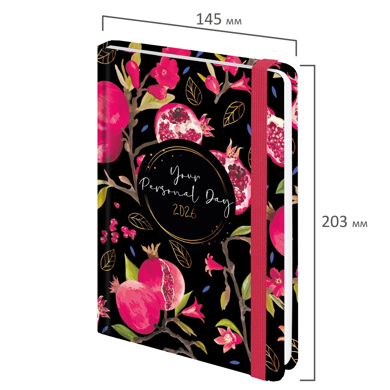 Ежедневник датированный 2026 с резинкой 145х203 мм, А5, BRAUBERG, твердый, "Гранаты", 117333
