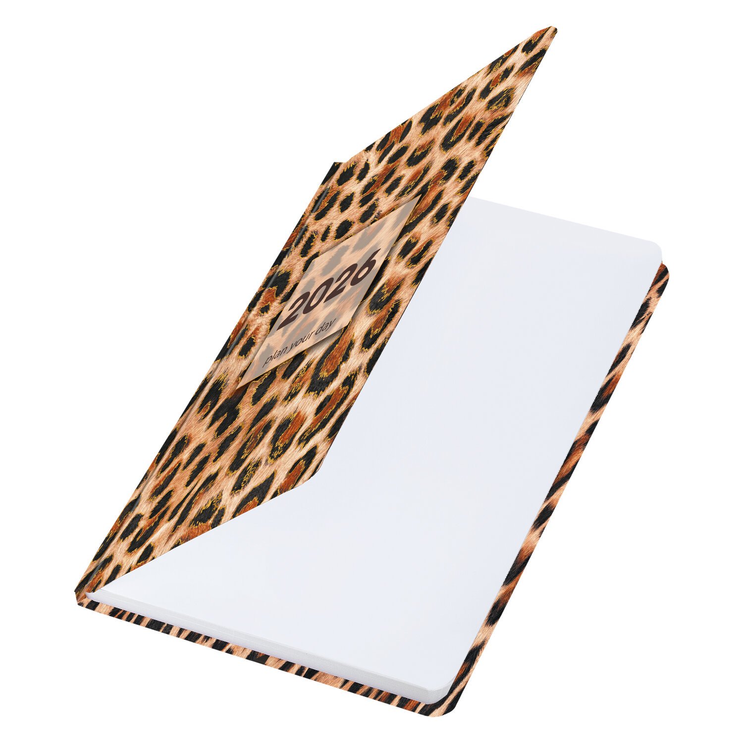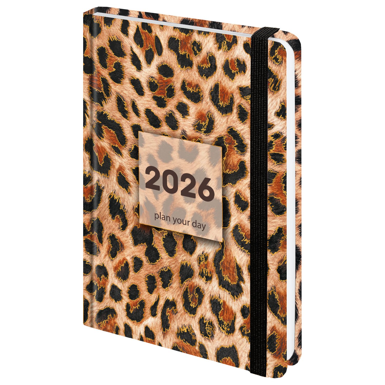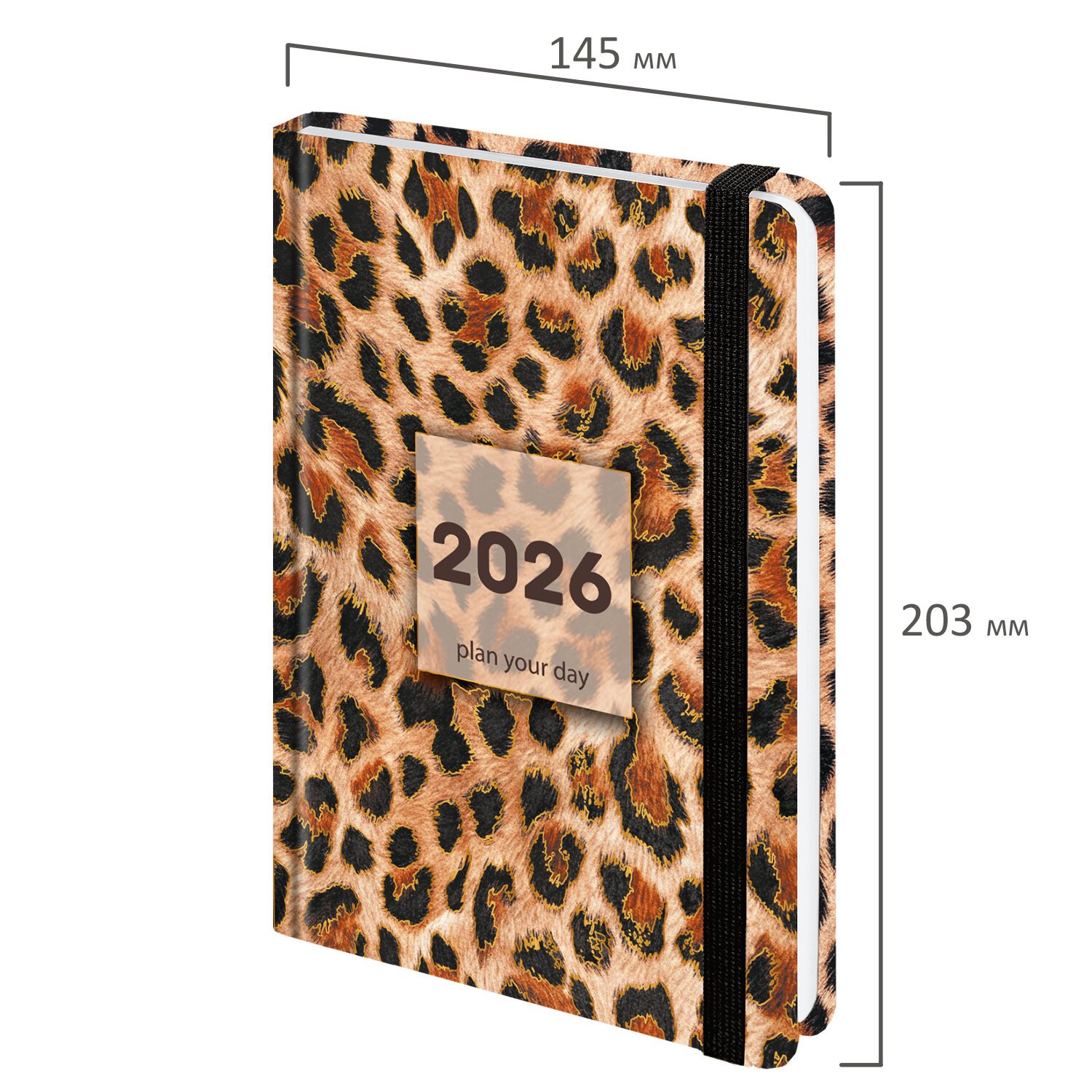 Ежедневник датированный 2026 с резинкой 145х203 мм, А5, BRAUBERG, твердый, "Леопард", 117334
