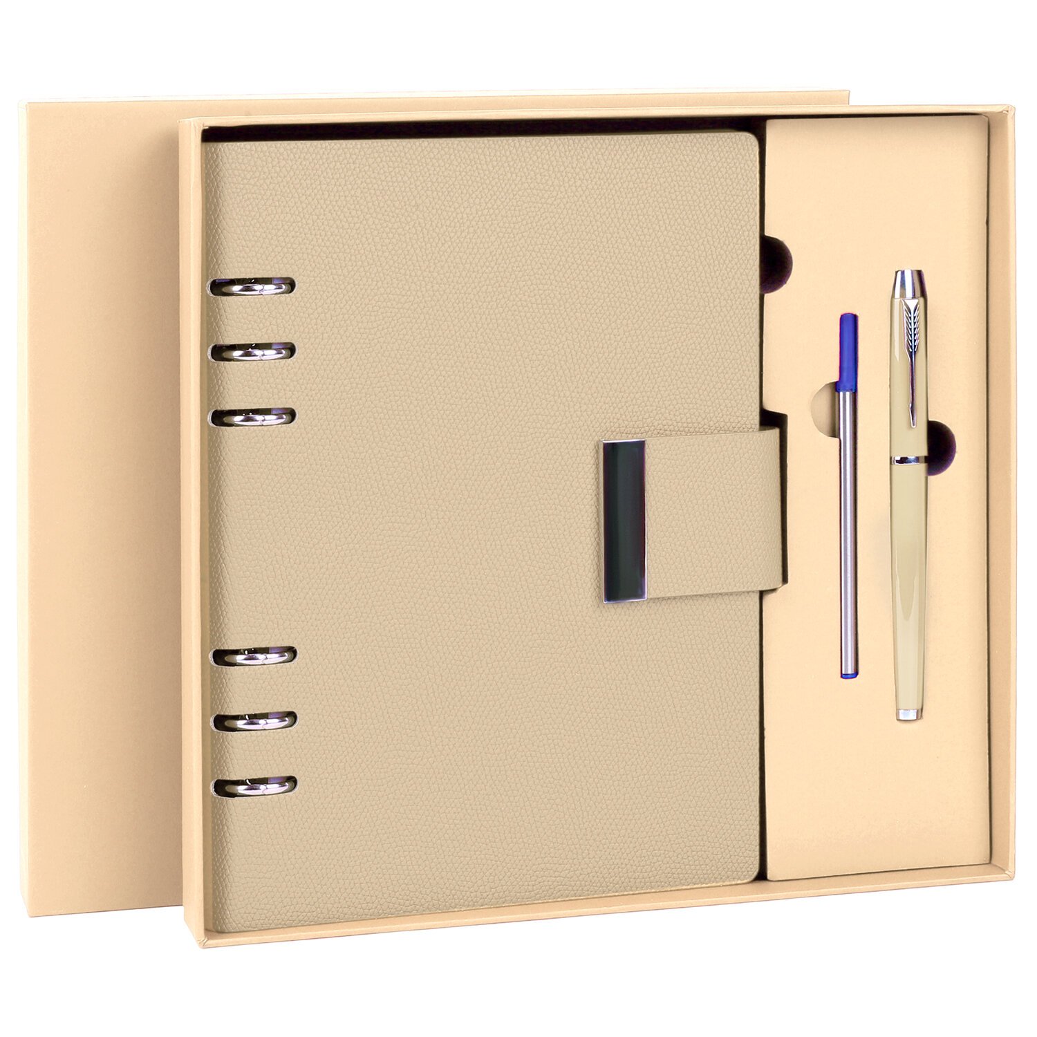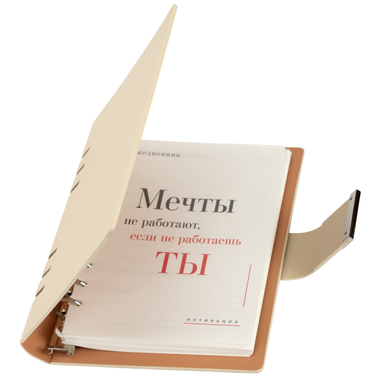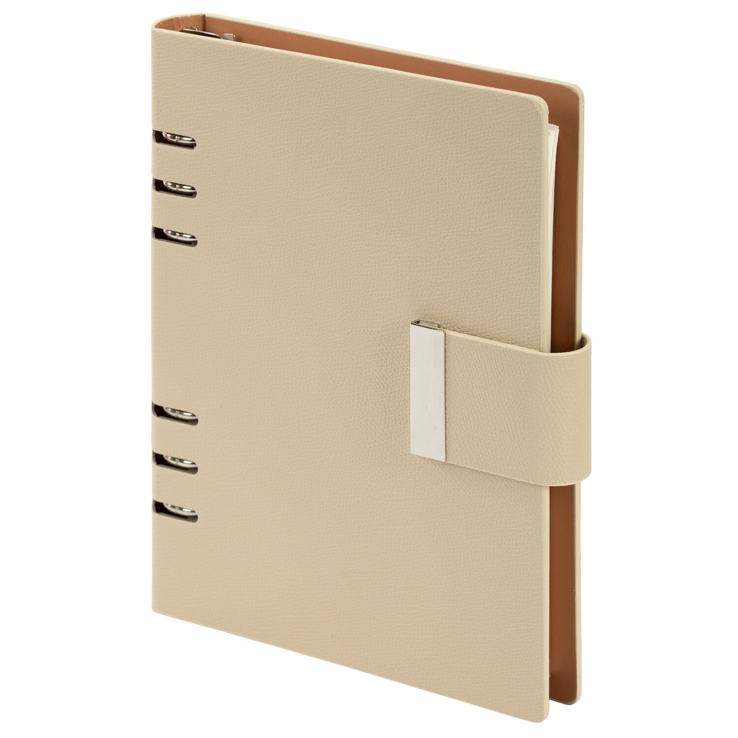 Ежедневник на кольцах в наборе с ручкой А5 165x229мм BRAUBERG "Lux", под кожу, 100 листов, бежевый, 116859