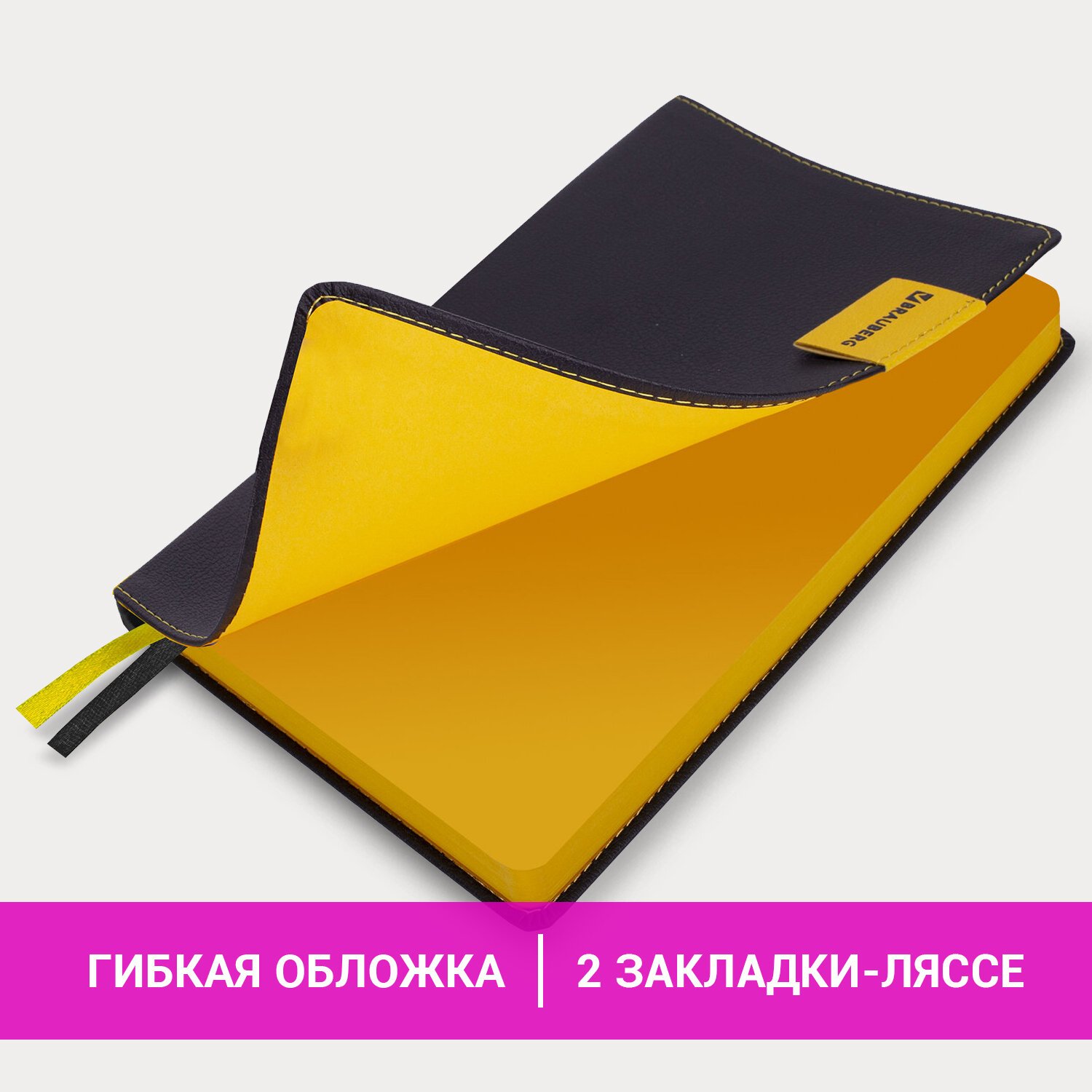 Срез и форзац ежедневника окрашены в контрастный цвет с обложкой, что придает ему особый шарм. Дополнением являются две закладки-ляссе, с помощью которых можно быстро открыть или зафиксировать ежедневник на нужной странице, а также держатель для ручки на контрасте с обложкой. Помимо прочего ежедневник снабжен справочным материалом. В конце ежедневника есть 3 страницы для записей и заметок.