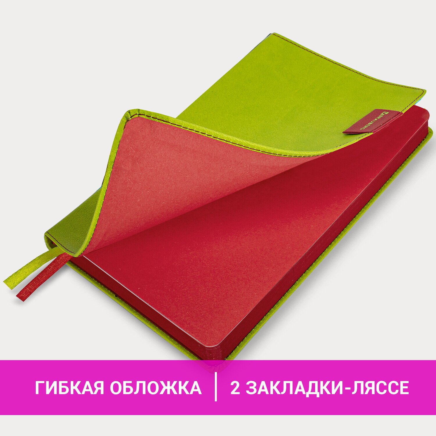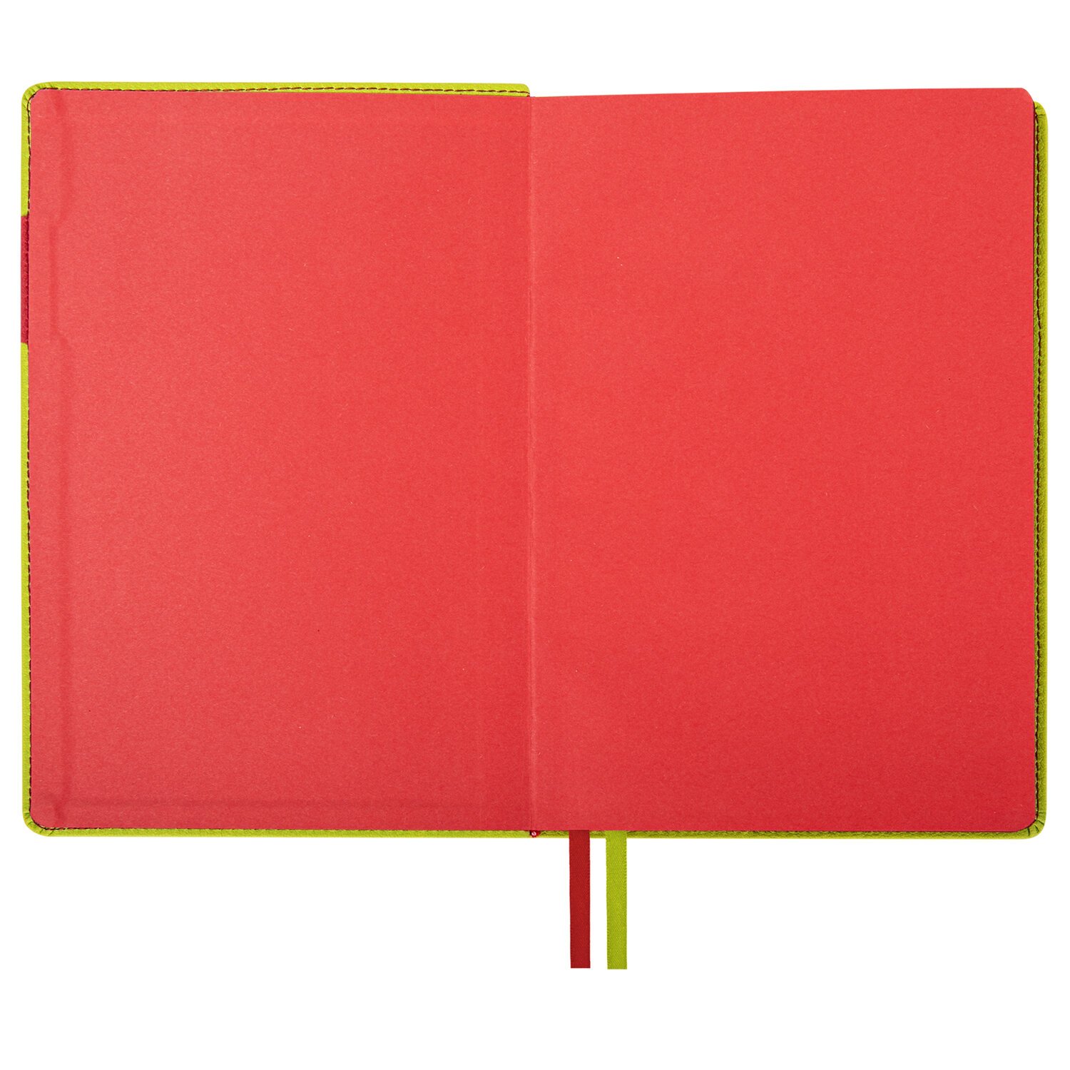 Срез и форзац ежедневника окрашены в контрастный цвет с обложкой, что придает ему особый шарм. Дополнением являются две закладки-ляссе, с помощью которых можно быстро открыть или зафиксировать ежедневник на нужной странице, а также держатель для ручки на контрасте с обложкой. Помимо прочего ежедневник снабжен справочным материалом. В конце ежедневника есть 3 страницы для записей и заметок.