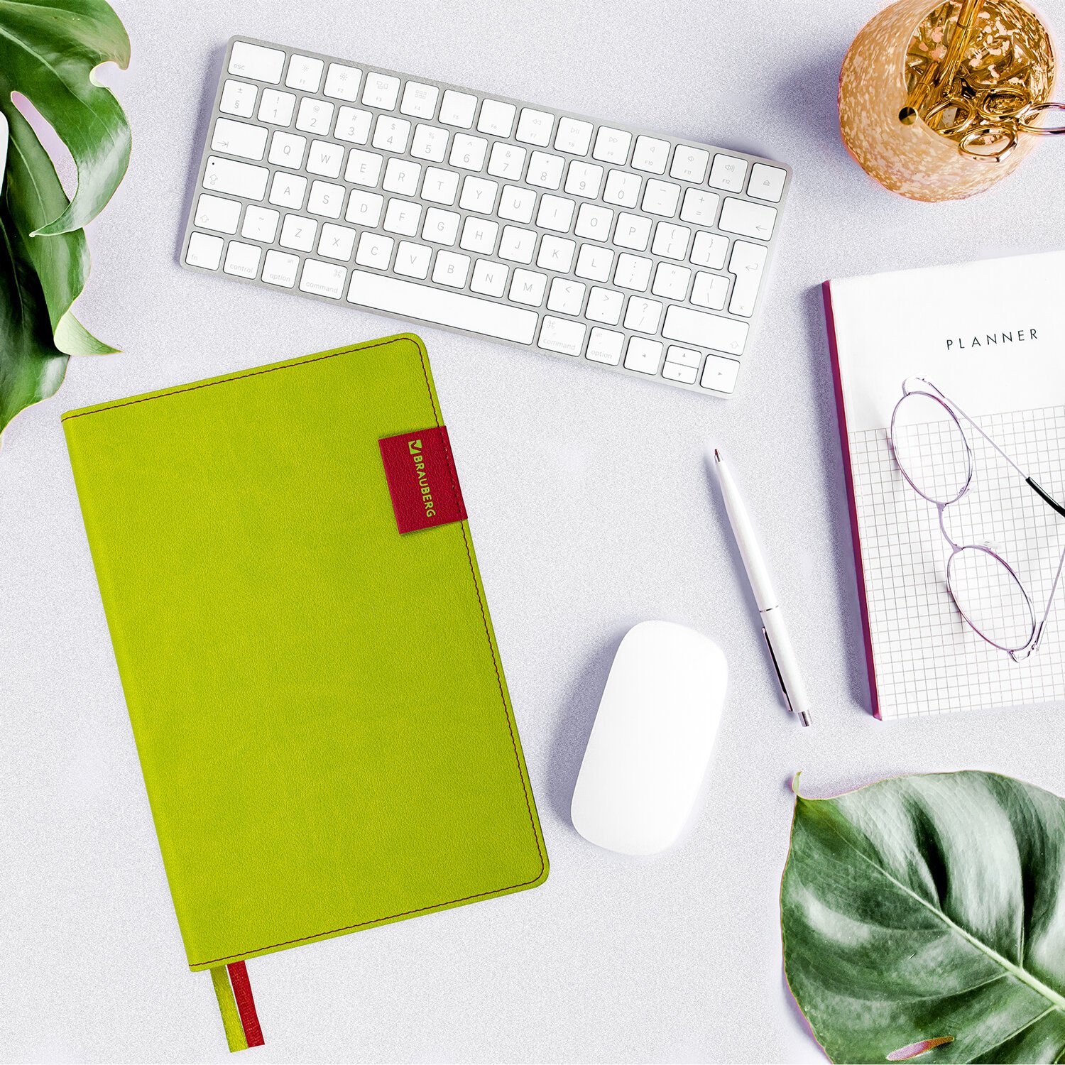 Ежедневник недатированный А5 (138х213 мм), BRAUBERG "AIM", под кожу 136 л., светло-зеленый, 113417