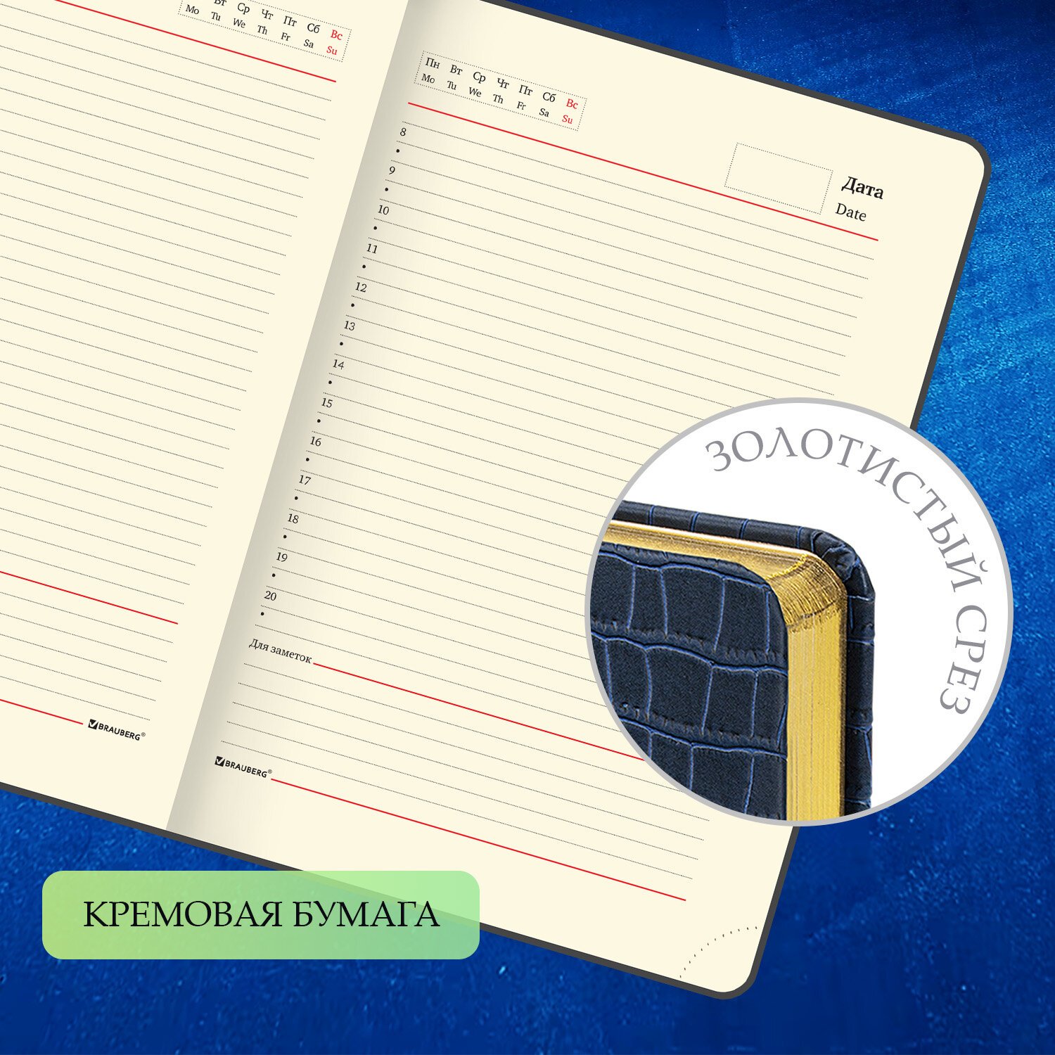 Недатированный ежедневник BRAUBERG "Comodo" станет отличным подарком к любому празднику и событию. Обложка, стилизованная под кожу крокодила, тонированная бумага и позолоченный боковой срез - сочетание элегантности и роскоши.