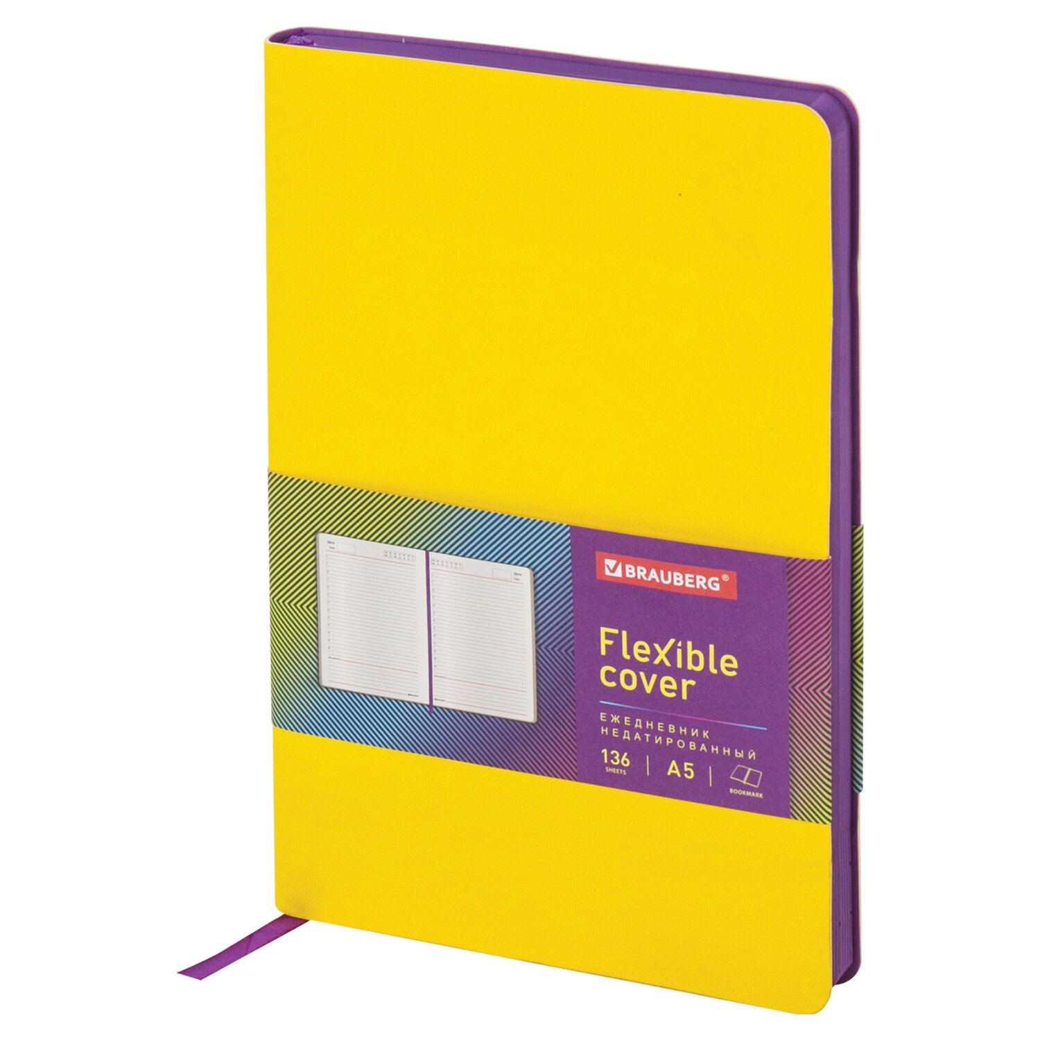 Ежедневник недатированный А5 138х213 мм BRAUBERG "Flex" под кожу, гибкий, 136 л., желтый, 111680