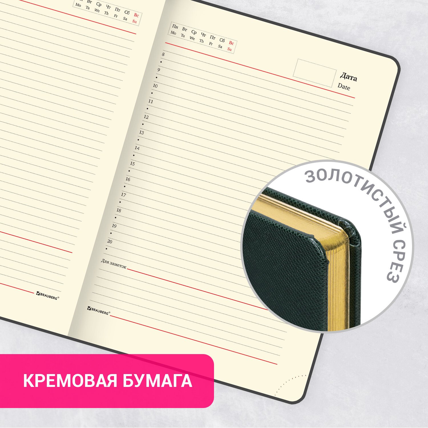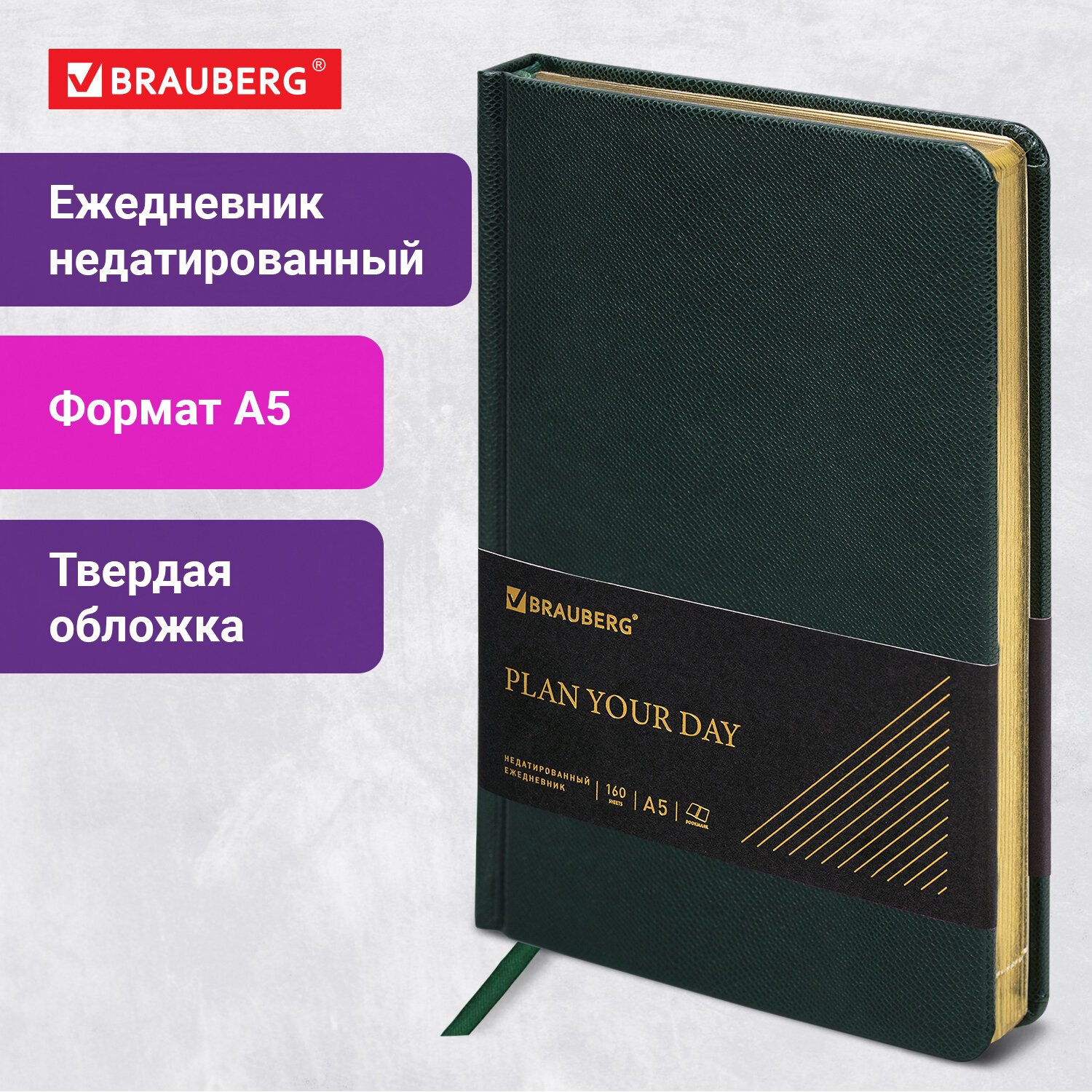 Ежедневник недатированный А5, 138х213 мм, BRAUBERG "Iguana", под кожу, 160 л., тёмно-зеленый, 114457