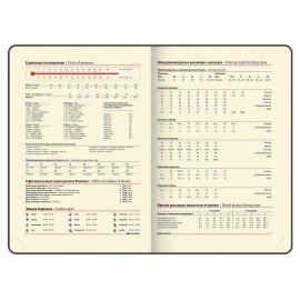 Срез и форзац ежедневника окрашены в контрастный цвет с обложкой, что придает ему особый шарм. Дополнением является закладка-ляссе, с помощью которой при необходимости можно быстро открыть ежедневник на нужной странице. Помимо прочего ежедневник снабжен справочным материалом. В конце ежедневника есть 3 страницы для записей и заметок.