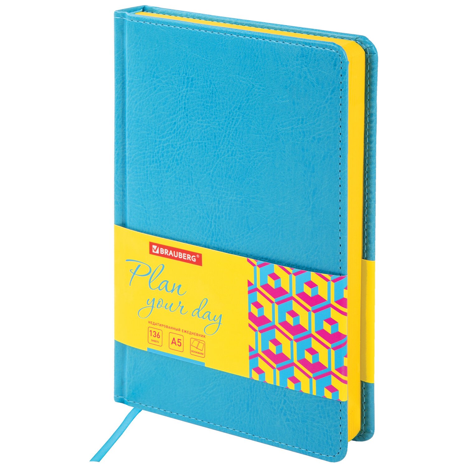 Ежедневник недатированный А5 138х213 мм BRAUBERG "Rainbow" под кожу, 136 л., бирюзовый, 111666