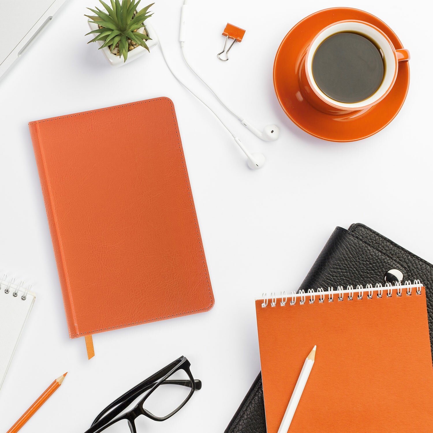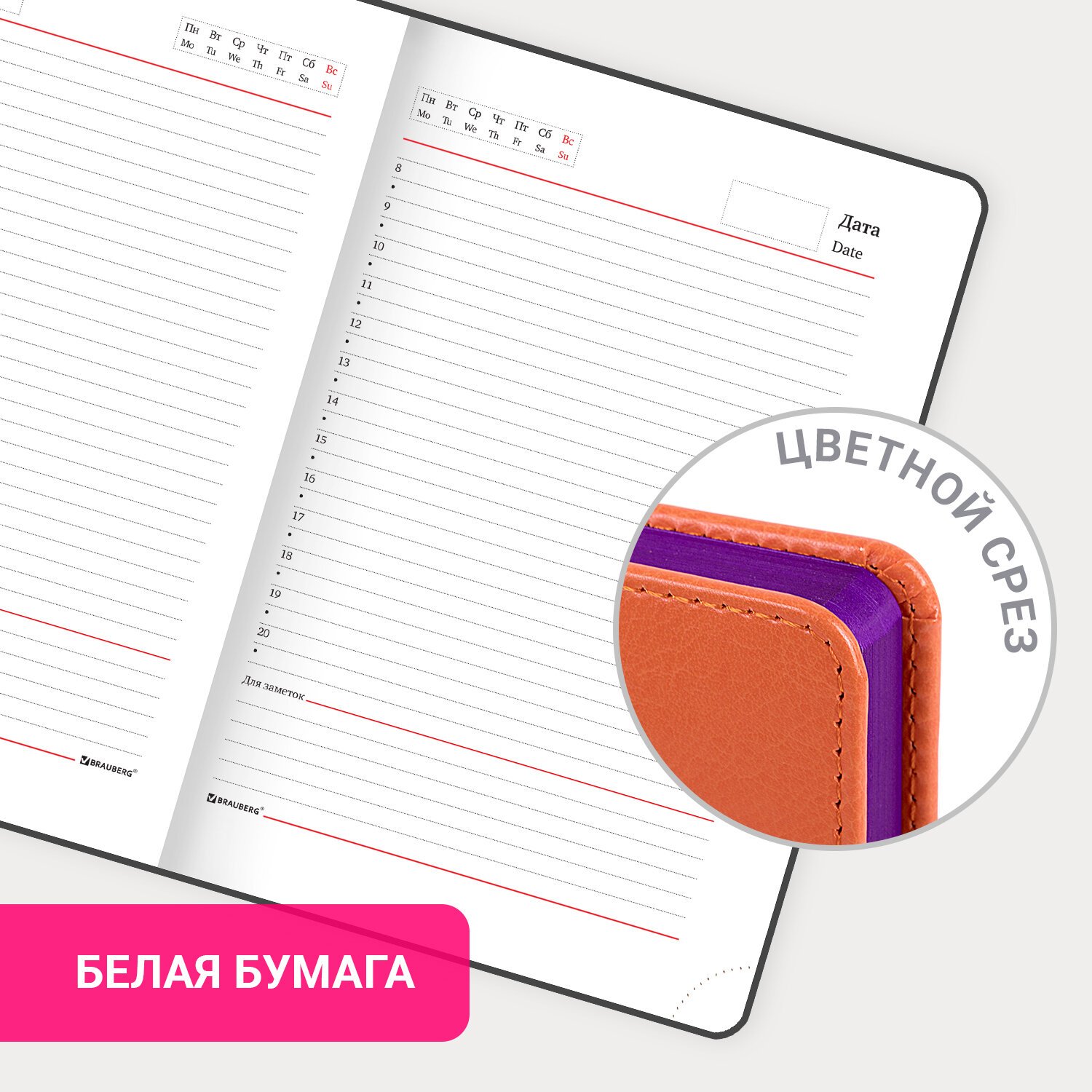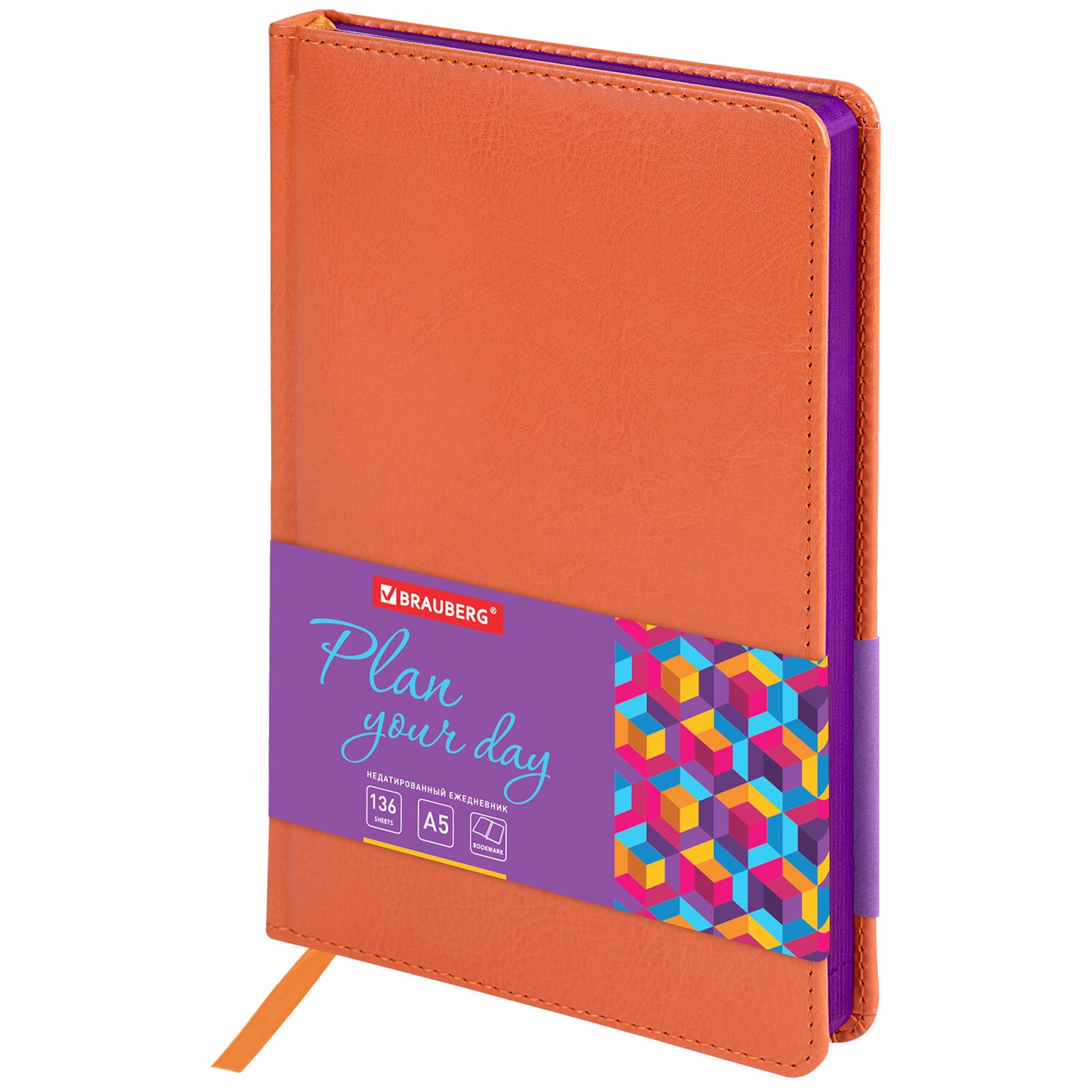 Ежедневник недатированный А5 138х213 мм BRAUBERG "Rainbow" под кожу, 136 л., оранжевый, 111668