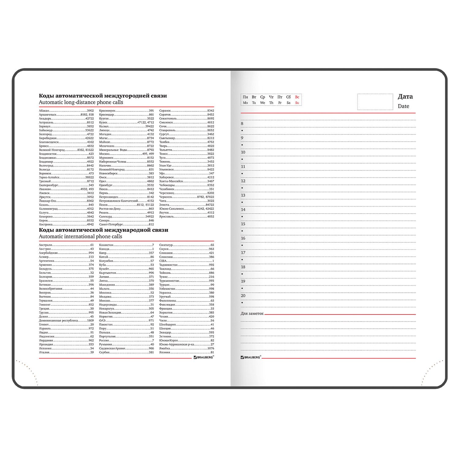 Внутренний блок включает 136 листов белой бумаги плотностью 70 г/м2. Каждая страничка имеет перфорированный угол. Благодаря стандартному формату А5 (138х213 мм) ежедневник удобно использовать как в офисе, так и на выездных деловых встречах. Твердая обложка стилизована под гладкую кожу. Подходит для горячего тиснения.