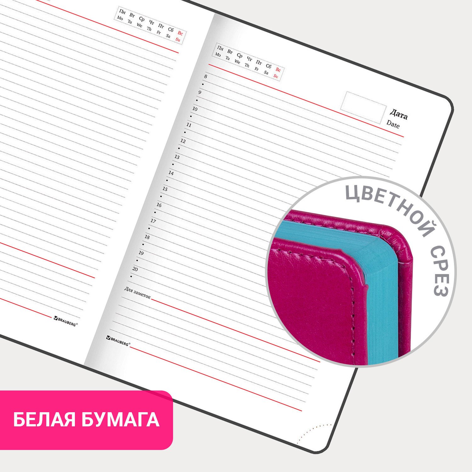 Ежедневник недатированный А5 138х213 мм BRAUBERG "Rainbow" под кожу, 136 л., розовый, 111665