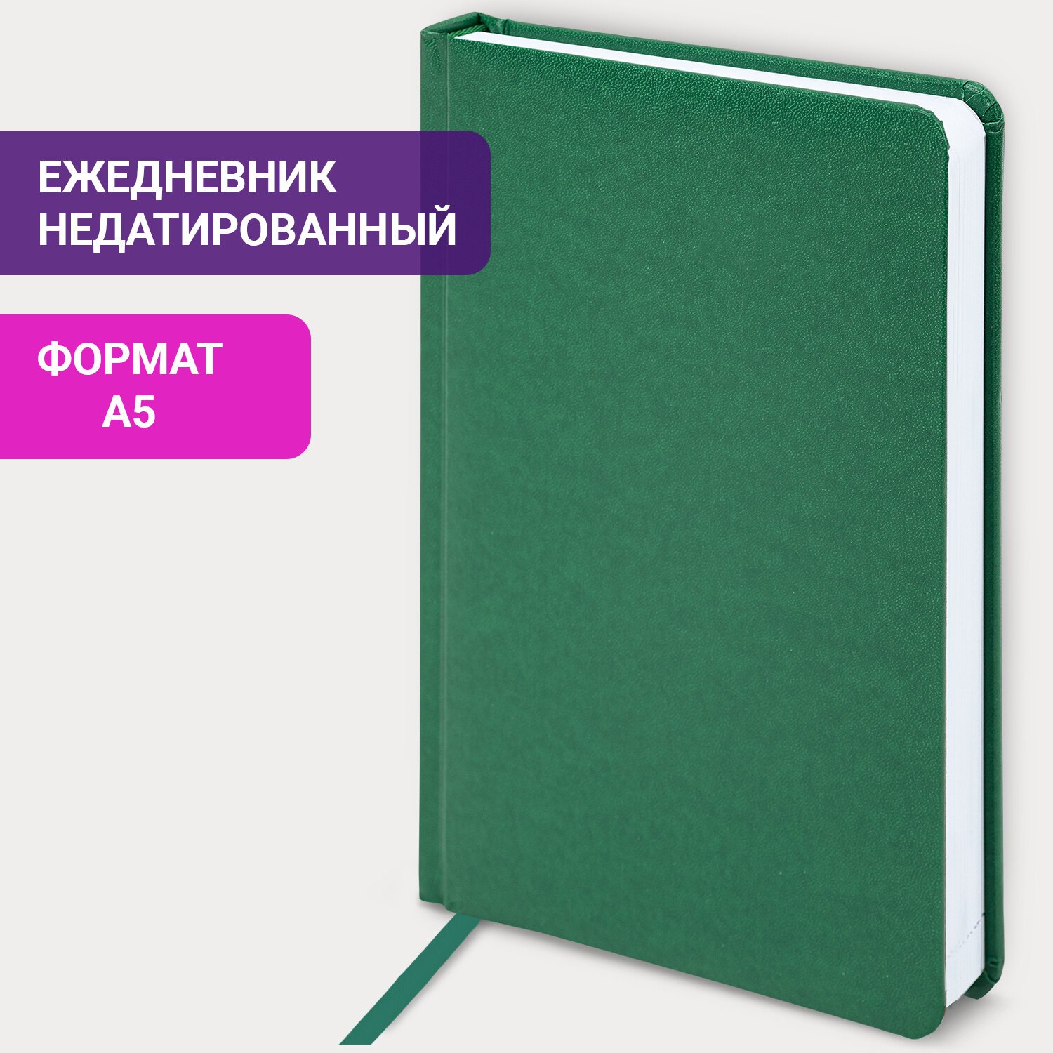Ежедневник недатированный А5 (138х213 мм) BRAUBERG "Select", балакрон, 160 л., зеленый, 123431