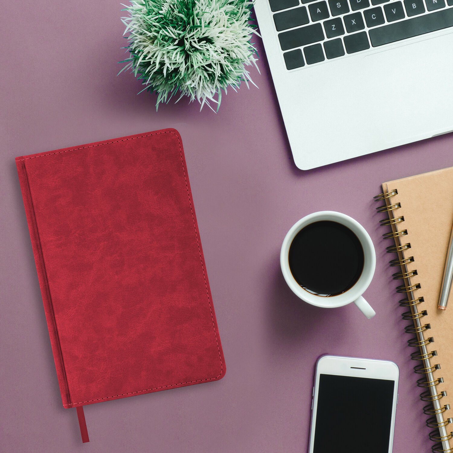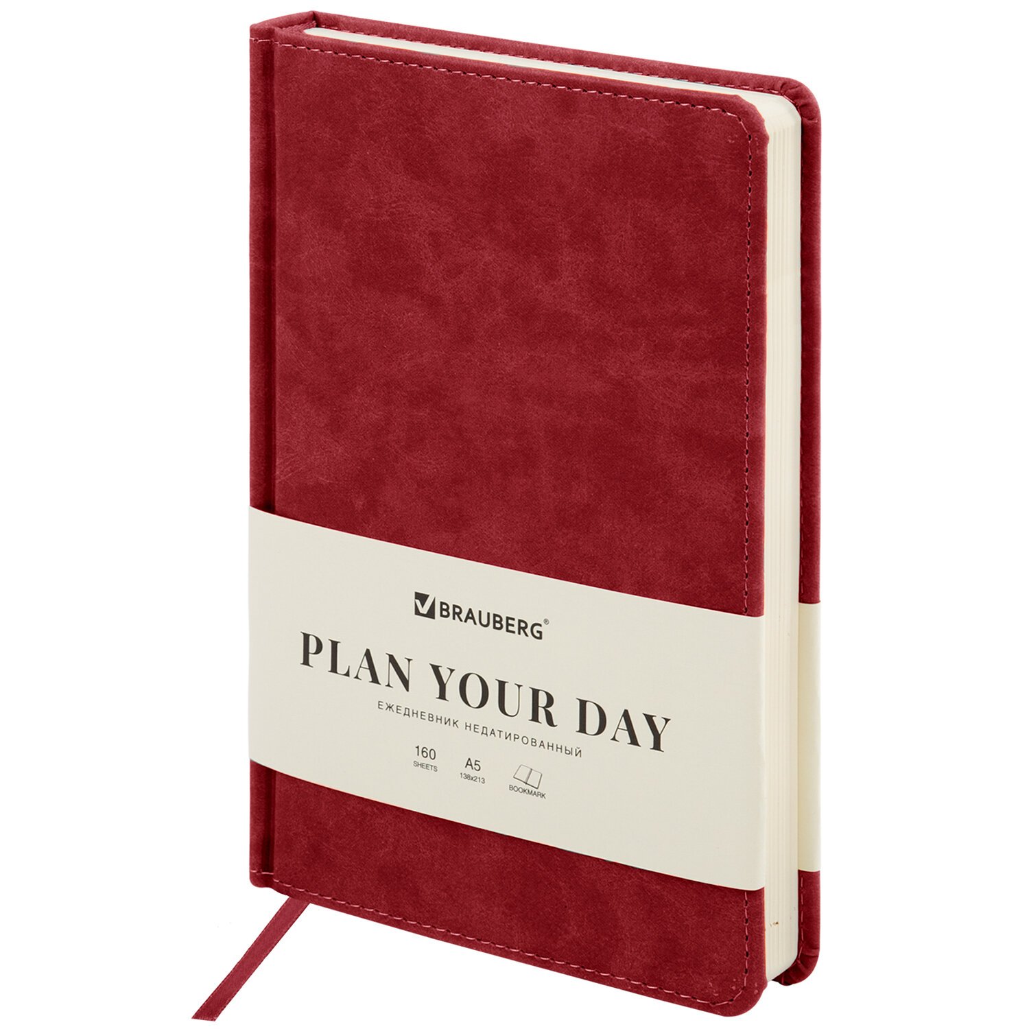 Ежедневник недатированный А5 (138х213 мм) BRAUBERG "Stylish", кожзам, гибкий, 160 л., красный, 111865