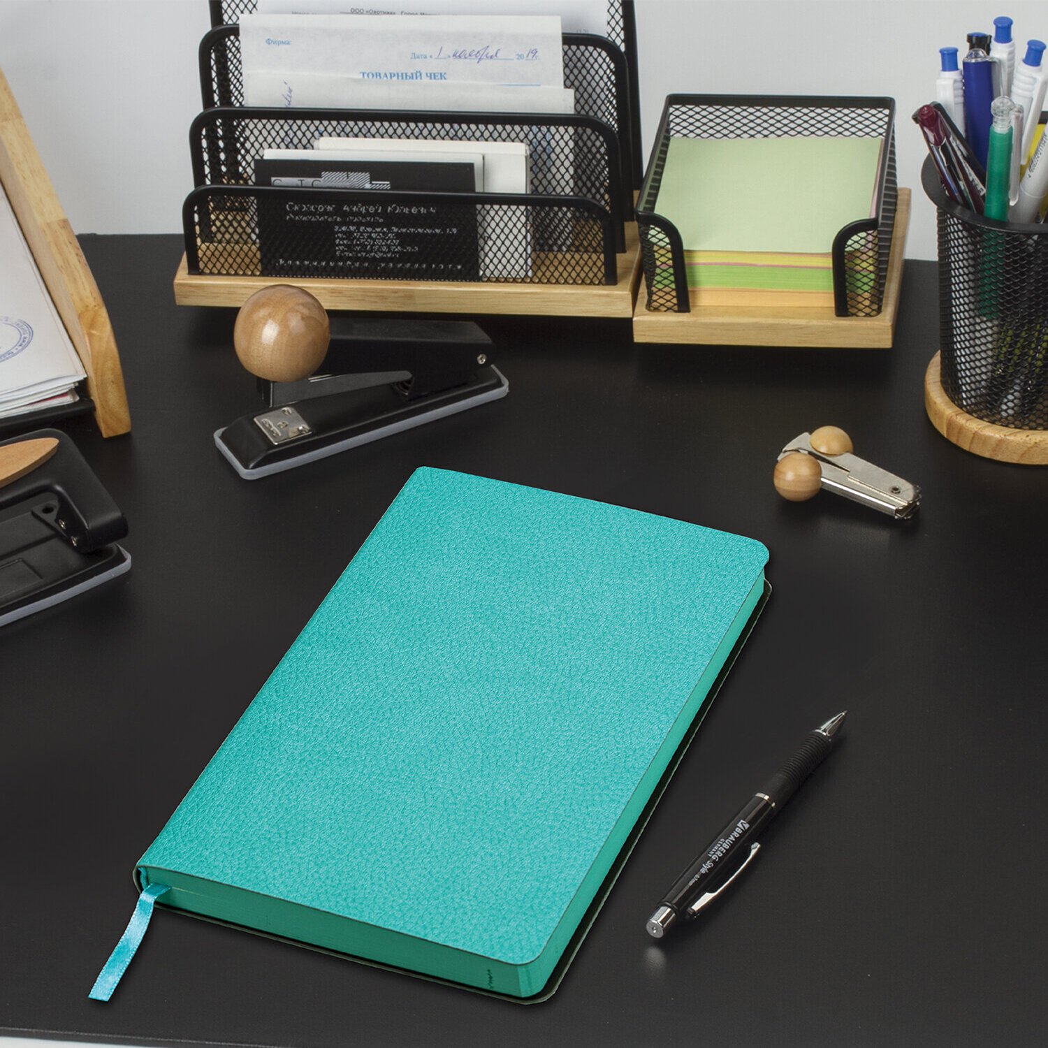 Ежедневник недатированный А5 (138х213 мм) BRAUBERG "Stylish", кожзам, гибкий, 160 л., бирюзовый, 111862