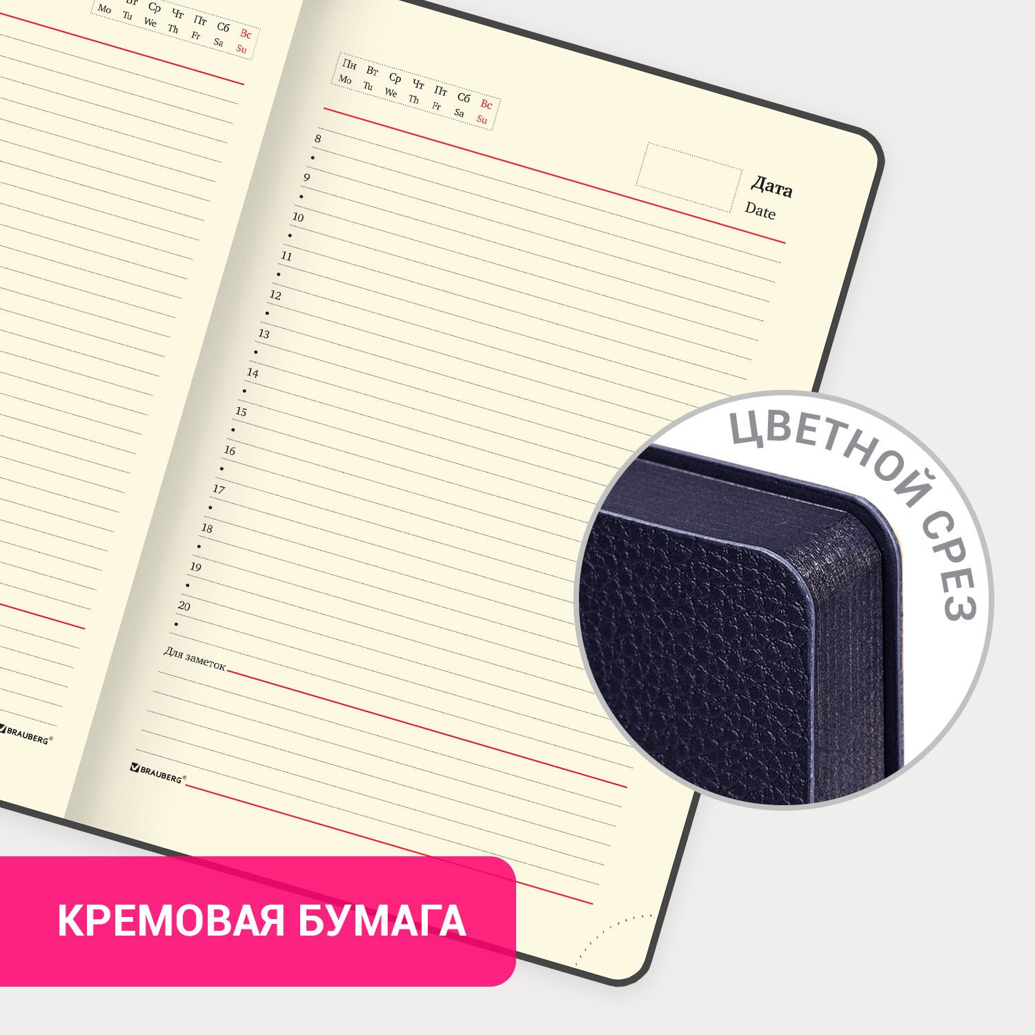 Недатированный ежедневник BRAUBERG "Stylish" с мягкой интегральной обложкой под фактурную кожу и прокрасом среза в цвет обложки - стильное и компактное решение для эффективного планирования и создания имиджа пунктуального человека.