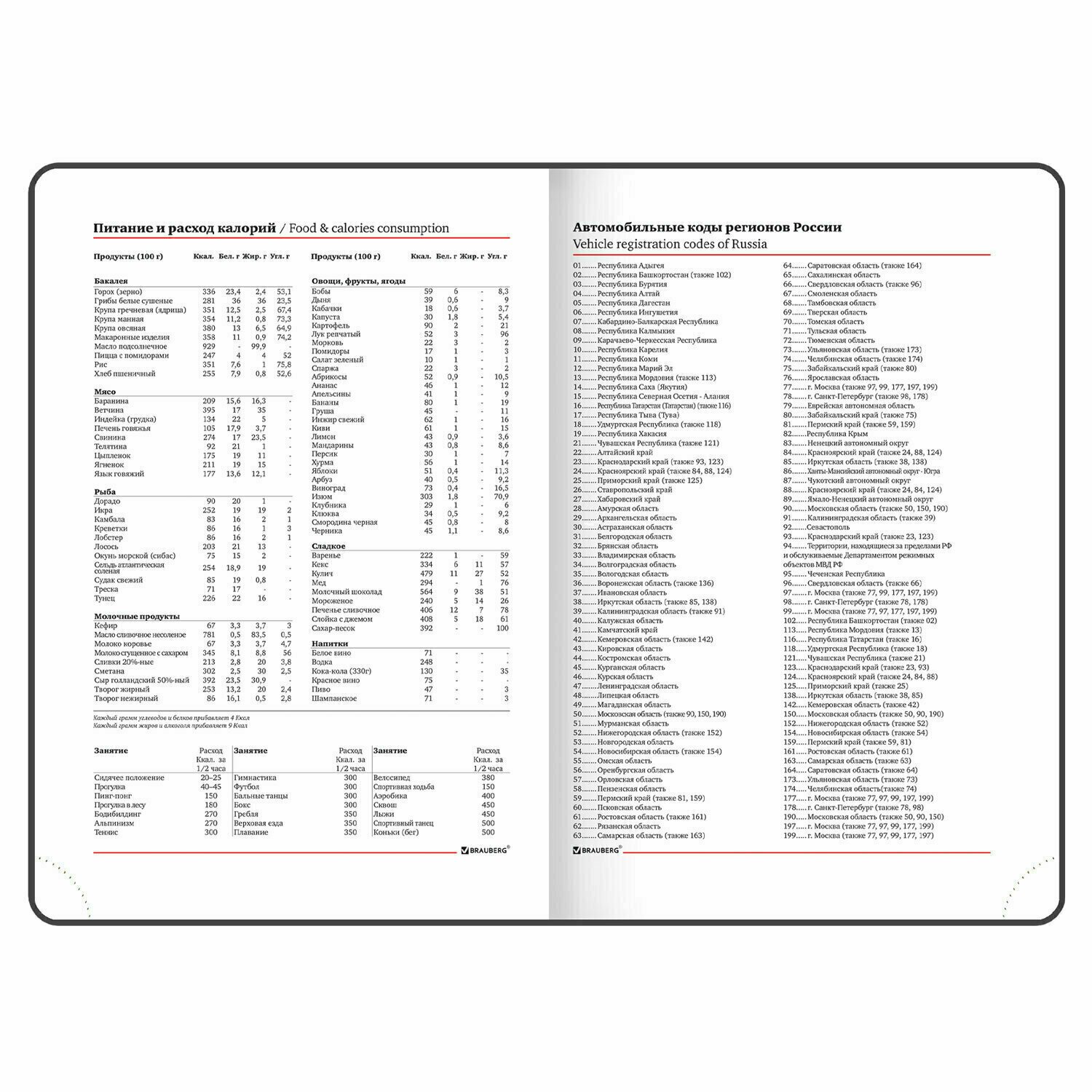 Внутренний блок включает 136 листов белой бумаги плотностью 70 г/м2. Благодаря стандартному формату А5 ежедневник удобно использовать как в офисе, так и на выездных деловых встречах. Интегральная (мягкая) обложка с полноцветной печатью делает ежедневник неповторимым и запоминающимся.