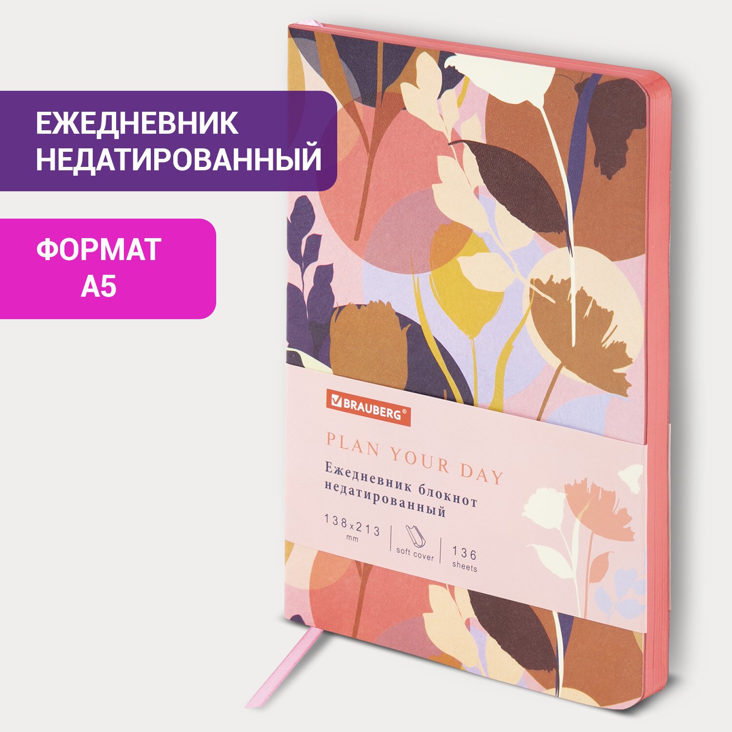 Ежедневник недатированный А5 (138х213 мм), BRAUBERG VISTA, под кожу, гибкий, 136 л., "Blossom", 112014