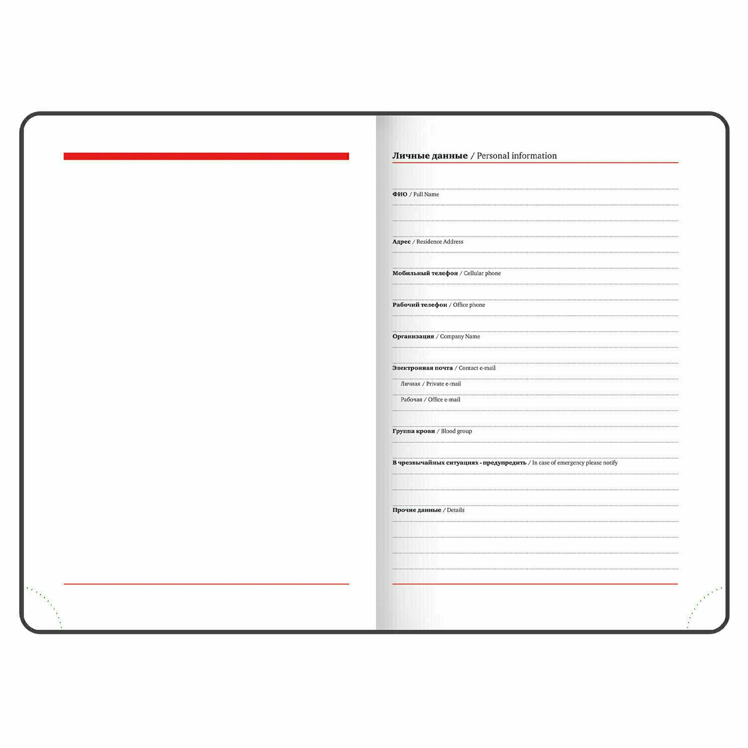 Внутренний блок включает 136 листов белой бумаги плотностью 70 г/м2. Благодаря стандартному формату А5 ежедневник удобно использовать как в офисе, так и на выездных деловых встречах. Интегральная (мягкая) обложка с полноцветной печатью делает ежедневник неповторимым и запоминающимся.