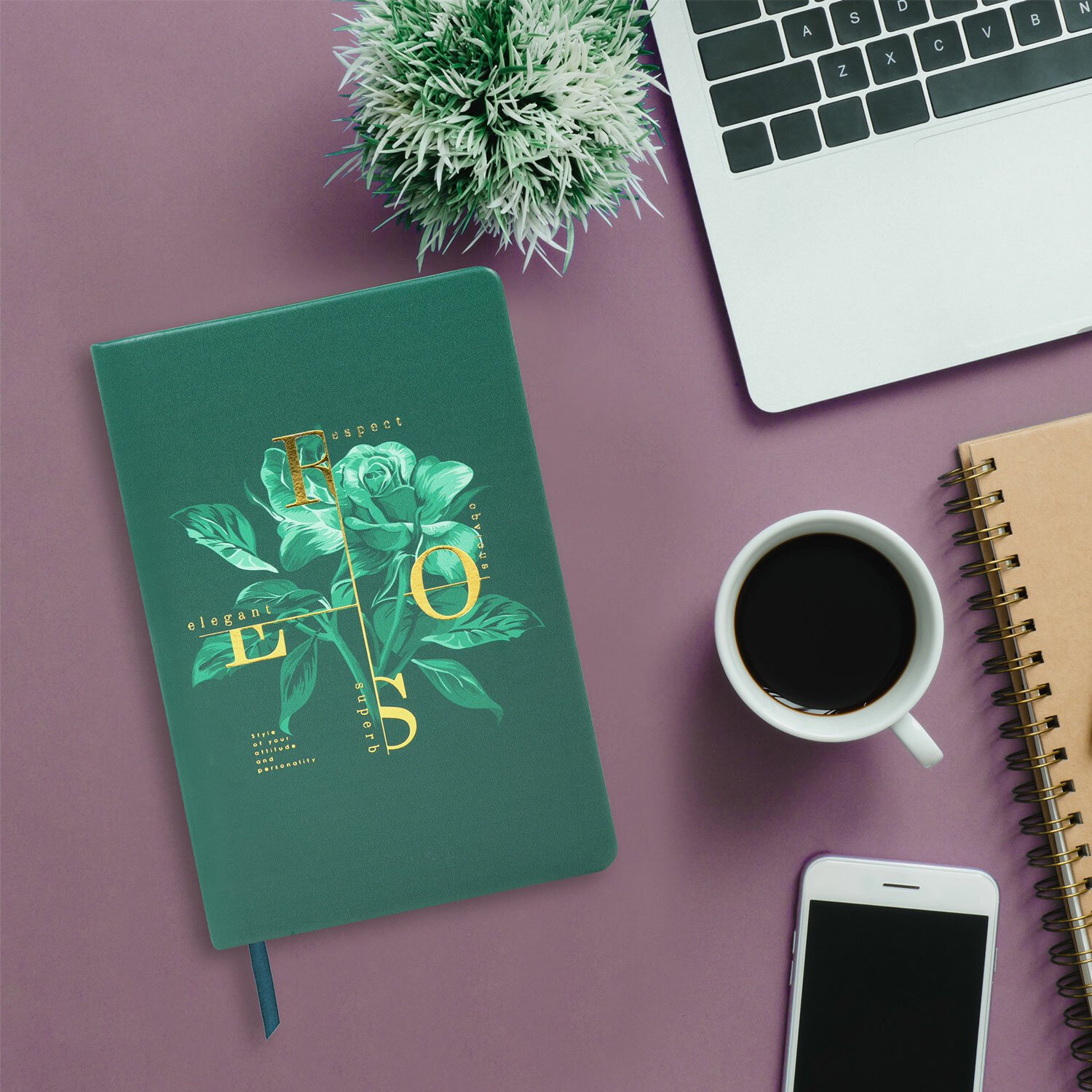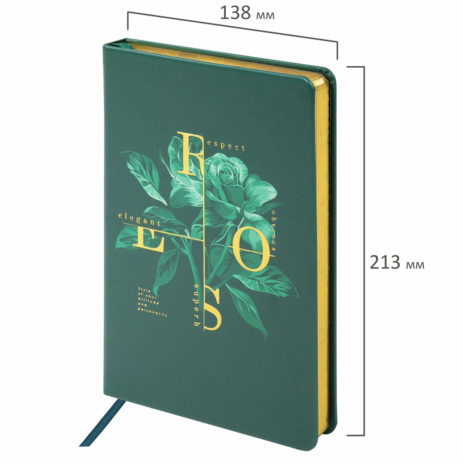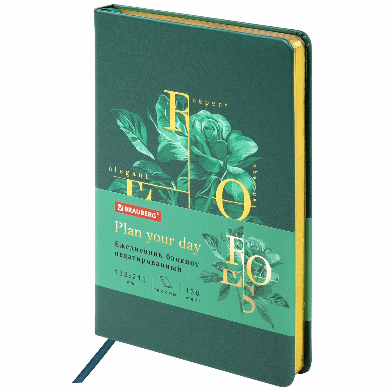 Внутренний блок включает 136 листов белой бумаги плотностью 70 г/м2. Благодаря стандартному формату А5 ежедневник удобно использовать как в офисе, так и на выездных деловых встречах. Твердая (книжная) обложка с полноцветной печатью и тиснением золотой фольгой делает ежедневник неповторимым и запоминающимся.