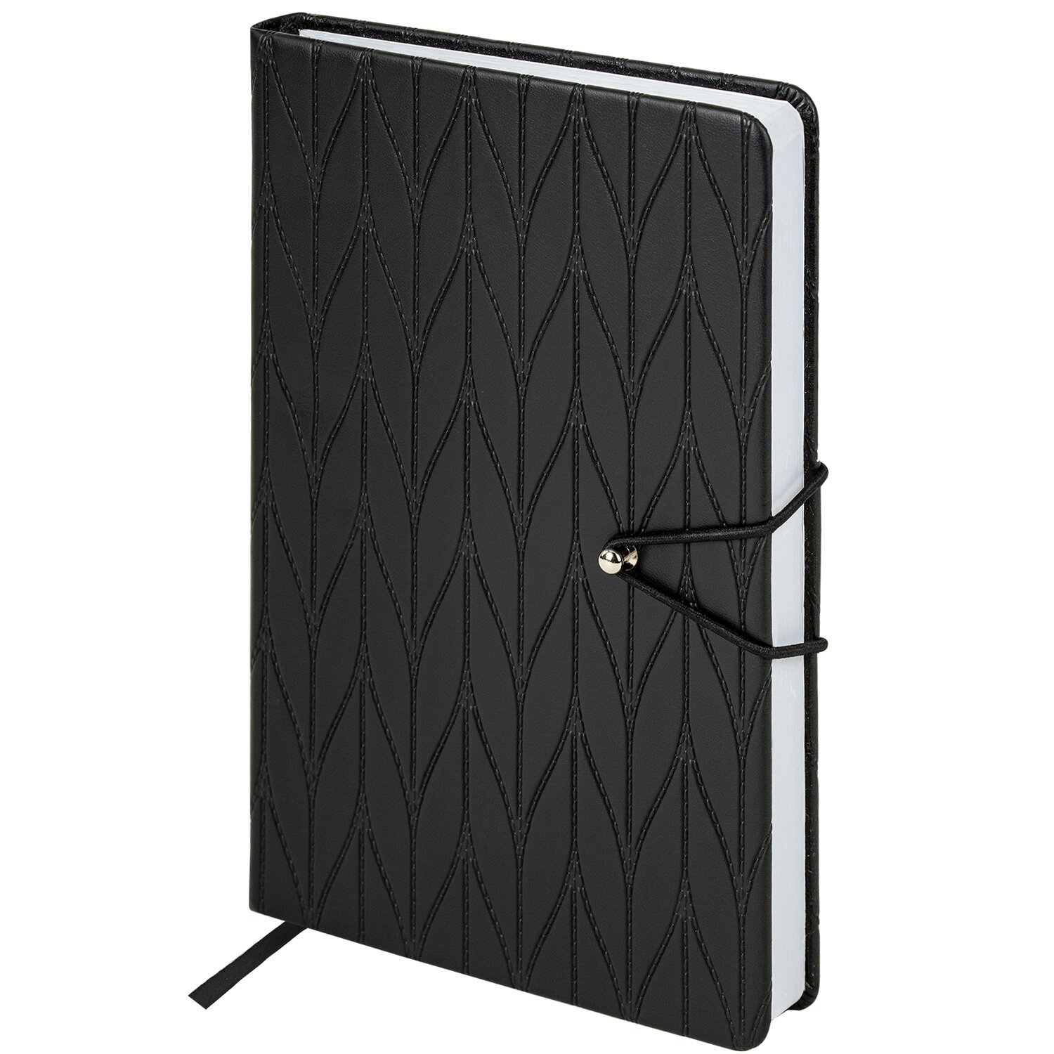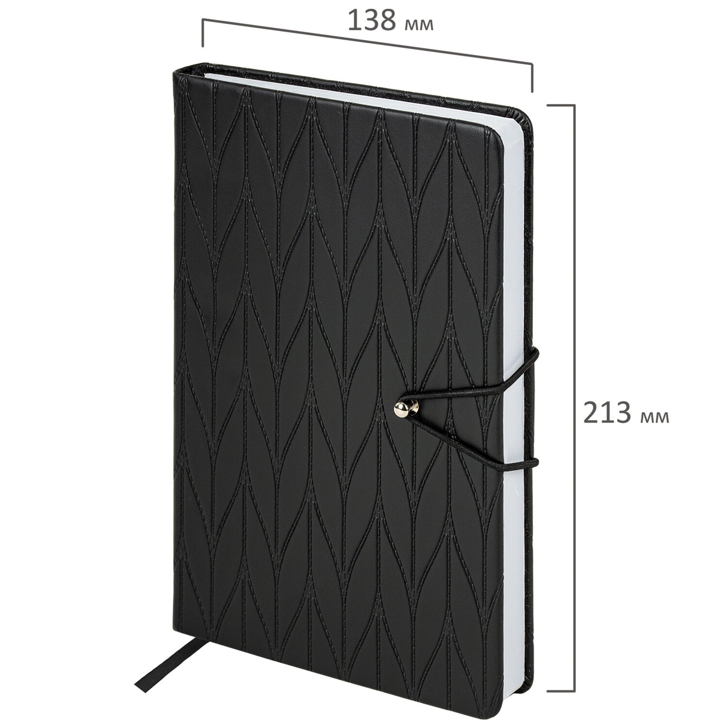Твердая обложка стилизована под кожу со стеганным рисунком. Подходит для горячего тиснения. Ежедневник снабжен резинкой-фиксатором на металлическом гвоздике, благодаря чему он не откроется в сумочке или портфеле, и листы не помнутся. Уголки у ежедневника закругленные. Дополнением является закладка-ляссе, с помощью которой при необходимости можно быстро открыть нужную страницу. Ежедневник снабжен обширным справочным материалом. В конце имеются 7 страниц для записей и заметок.