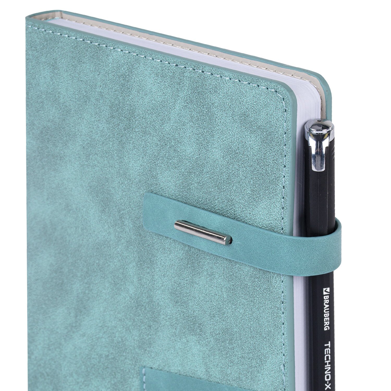 Ежедневник недатированный А5 138х213мм BRAUBERG "Cowboy", под кожу, застежка 160л, голубой, 116197