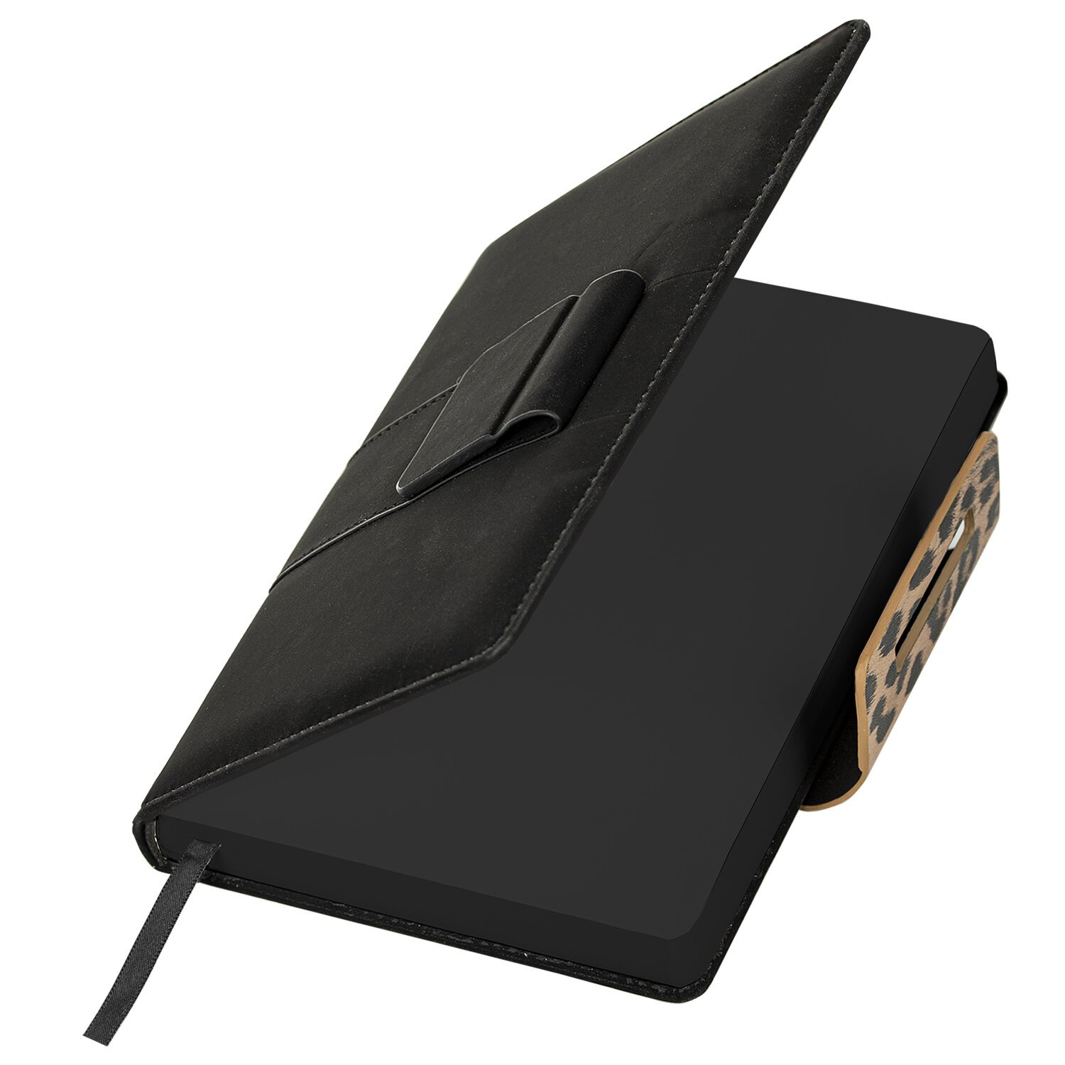 Ежедневник недатированный А5 138х213мм BRAUBERG Safari, под кожу, магнит 160л, Leopard черный/бежевый, 116592