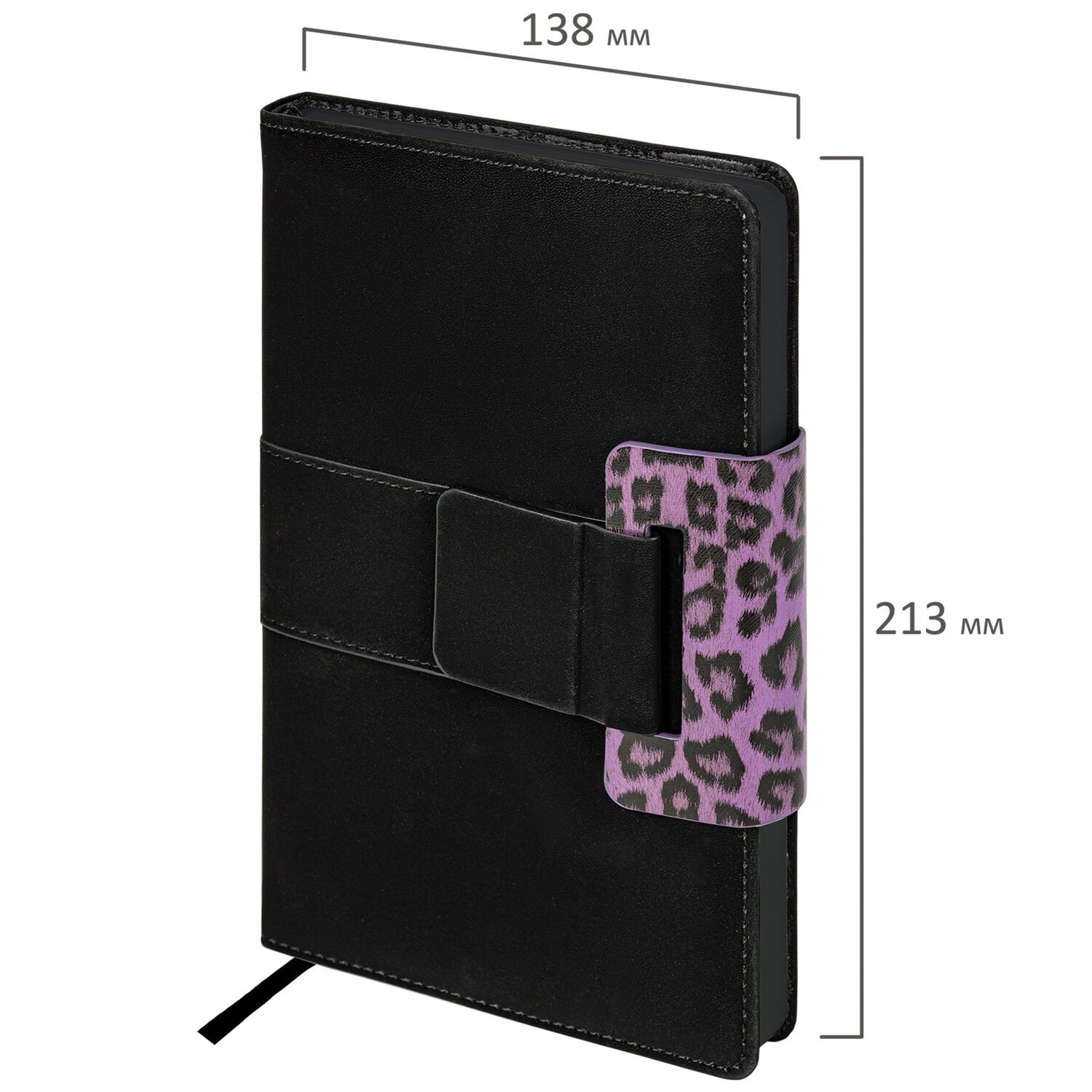 Ежедневник недатированный А5 138х213мм BRAUBERG Safari, под кожу, магнит 160л, Leopard, фиолетовый, 116593