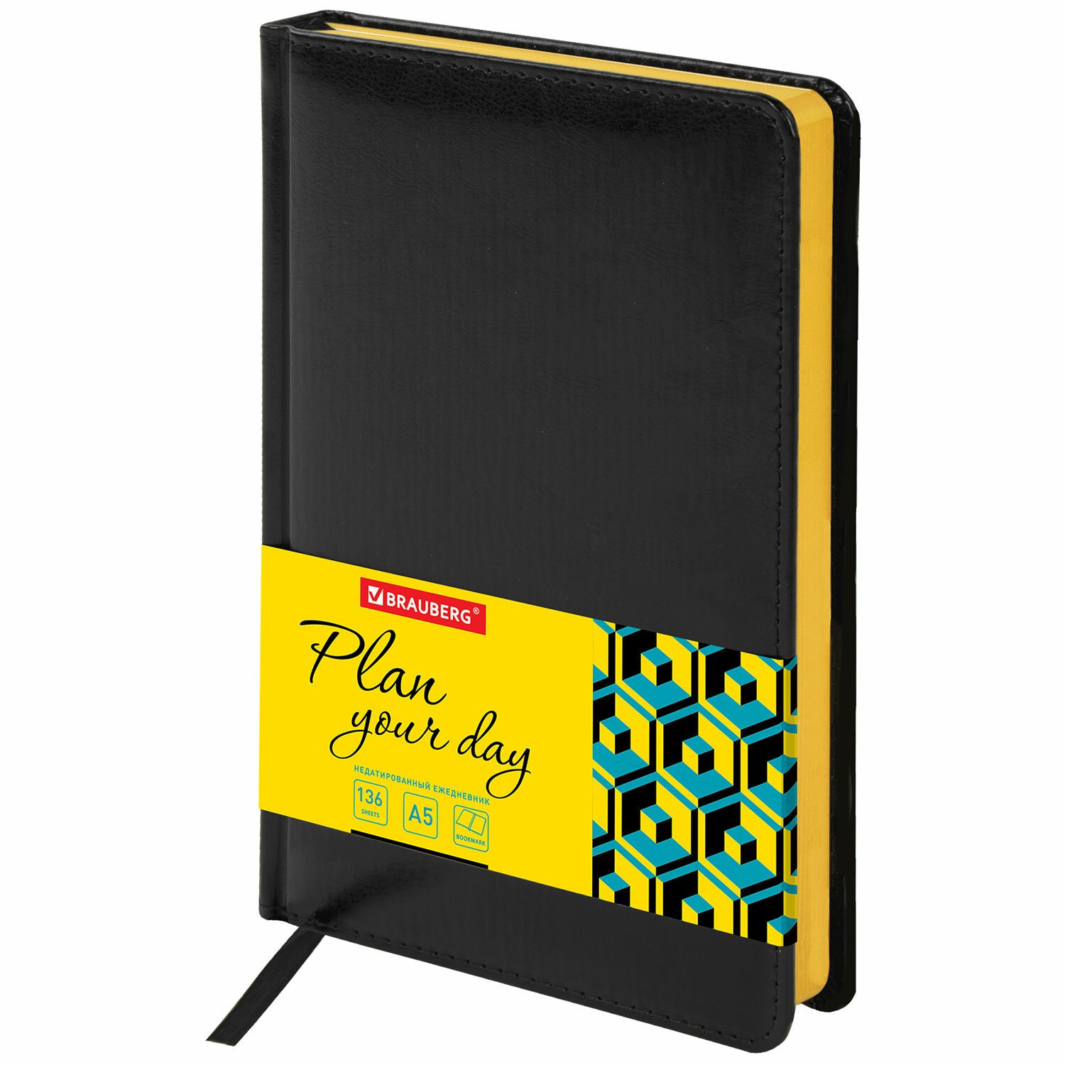 Ежедневник недатированный А5 138x213 мм BRAUBERG "Rainbow", под кожу, 136 л., черный/желтый, 113497