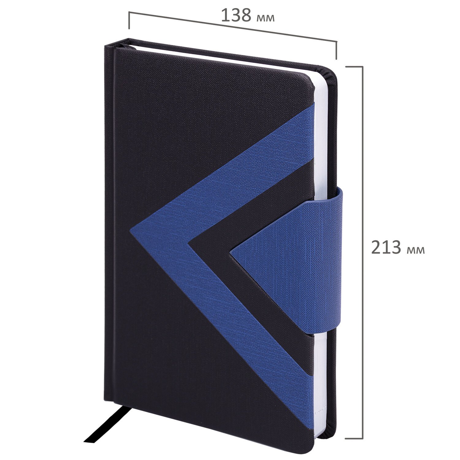 Внутренний блок включает 160 листов белой бумаги плотностью 70 г/м2. Каждая страничка имеет перфорированный угол. Благодаря стандартному формату А5 (138x213 мм) ежедневник удобно использовать как в офисе, так и на выездных деловых встречах. Твердая обложка, стилизованная под гладкую кожу, подходит для горячего тиснения. Снабжен магнитной застежкой, благодаря чему ежедневник не откроется в сумке или портфеле.