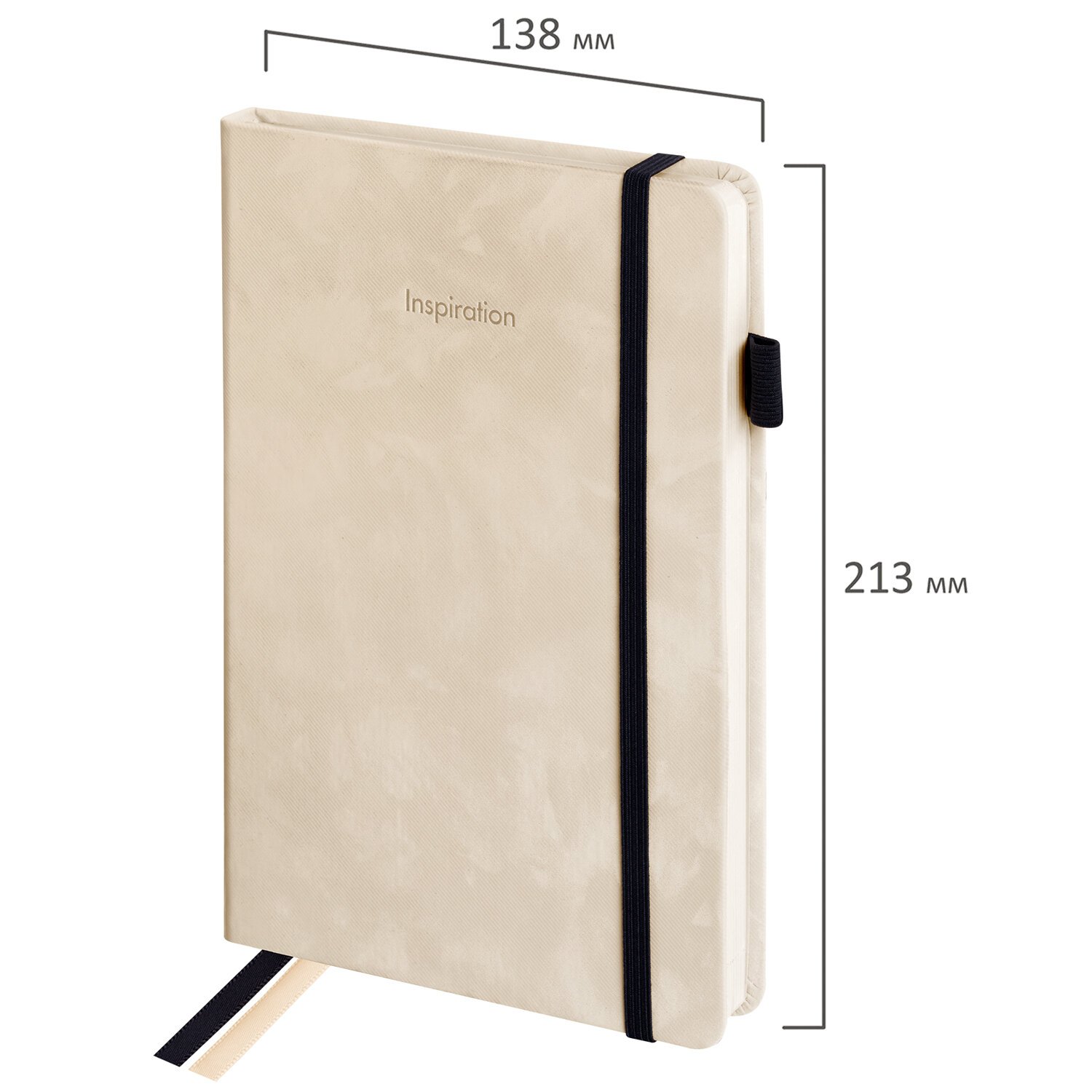 Ежедневник недатированный А5 138x213мм BRAUBERG Velvet, резинка, держатель, 160л, бежевый, 116244