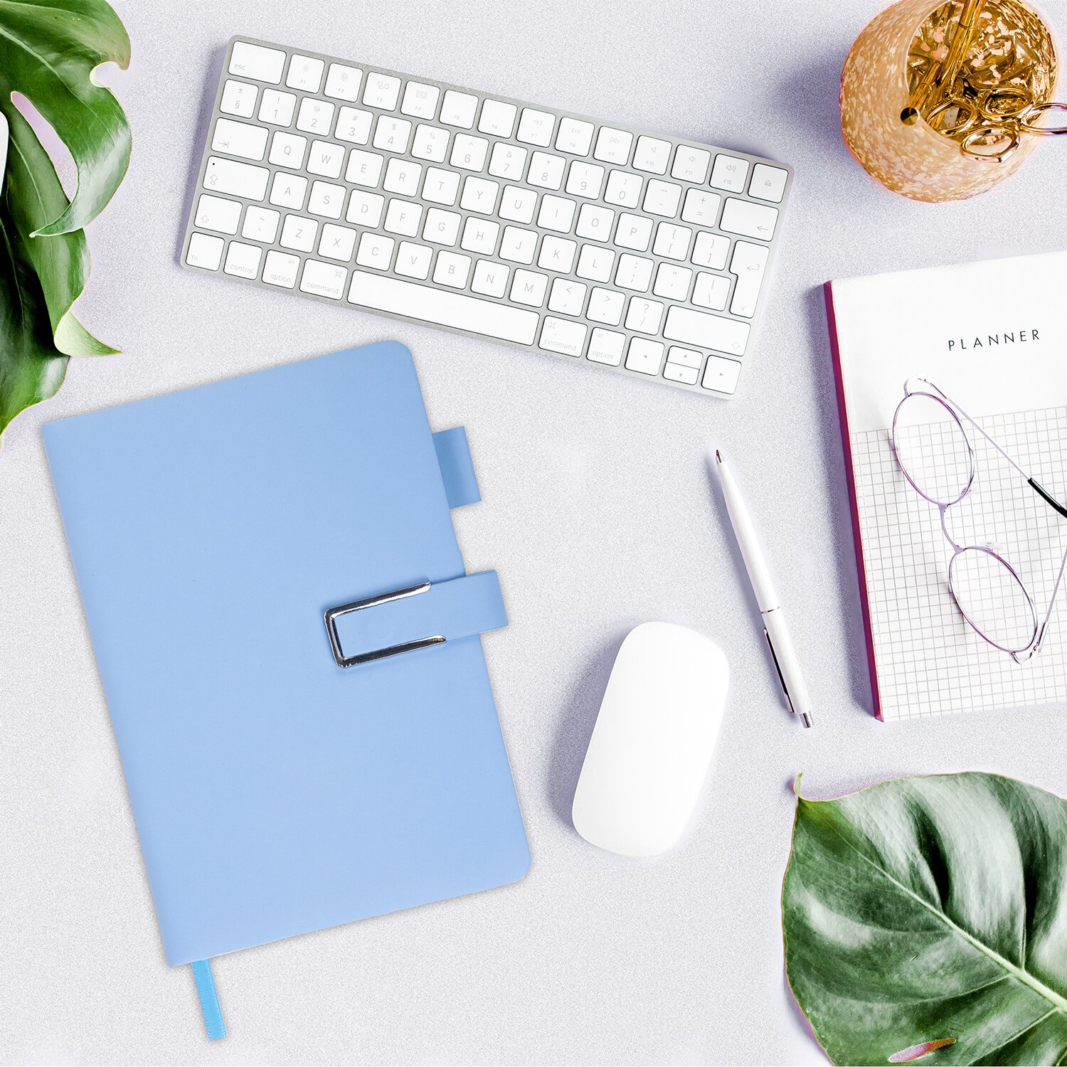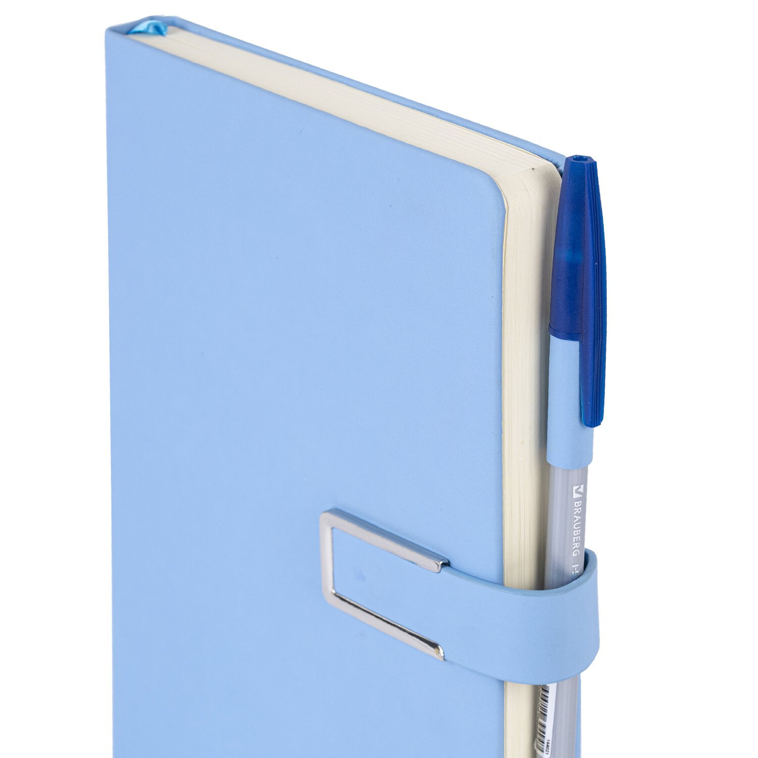 Ежедневник недатированный А5 143х210мм BRAUBERG Deluxe, под кожу, магнит 160л, голубой, 117144
