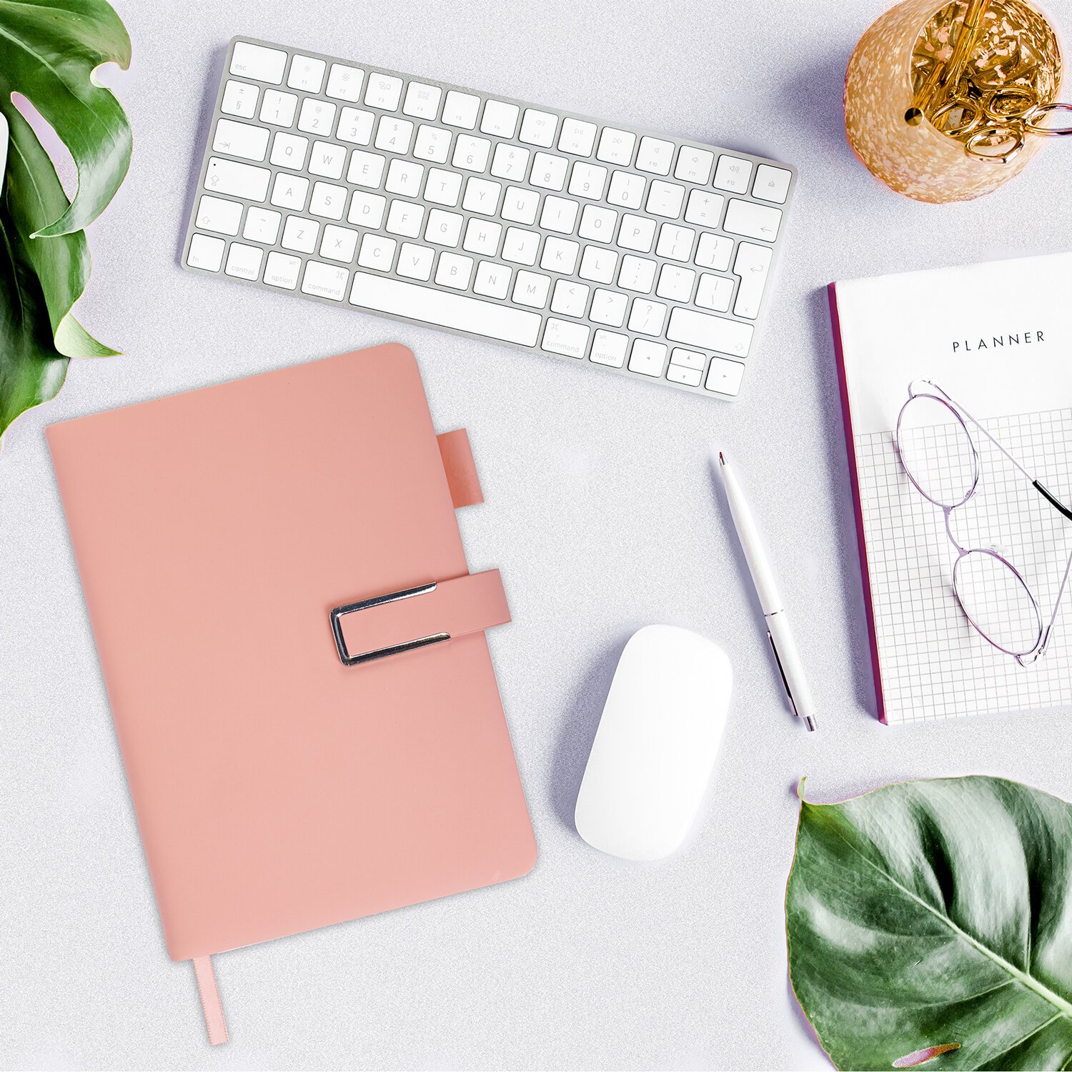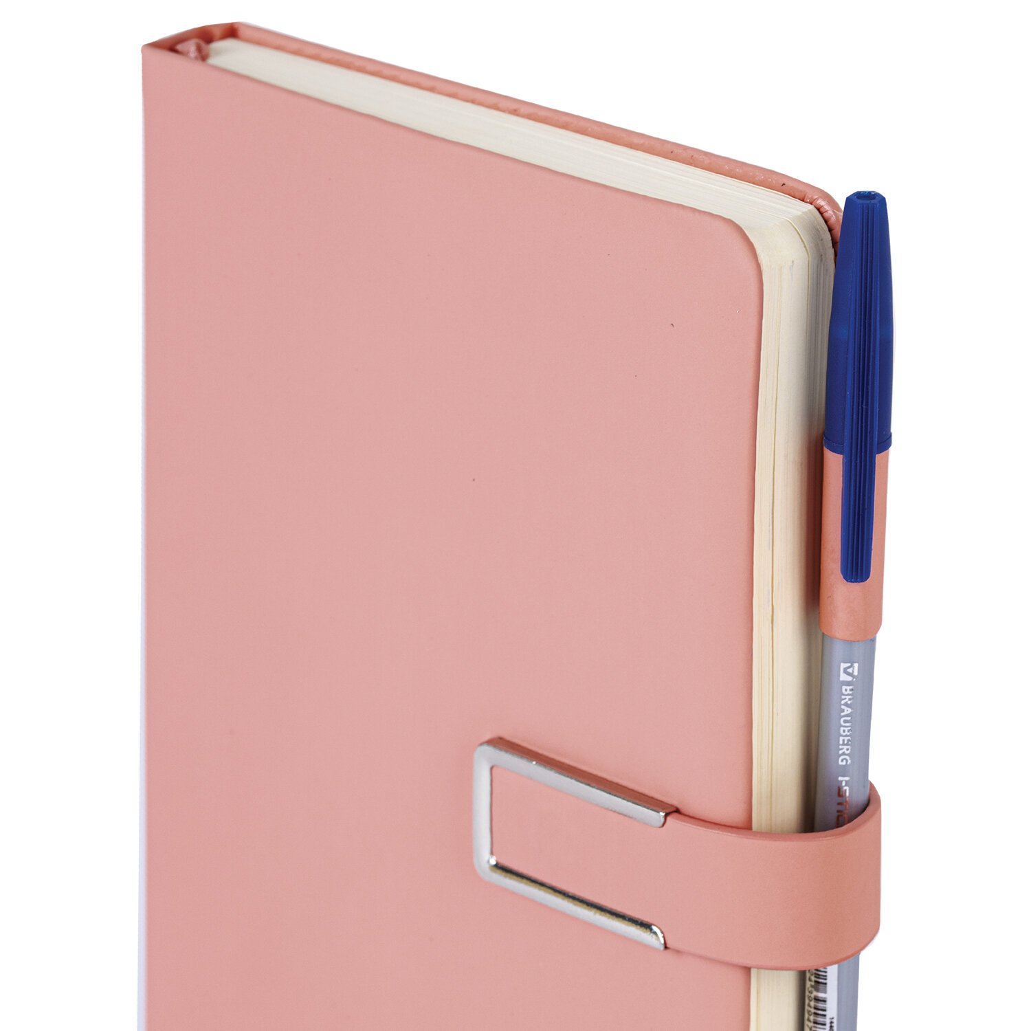 Ежедневник недатированный А5 143х210мм BRAUBERG Deluxe, под кожу, магнит 160л, розовый, 117143