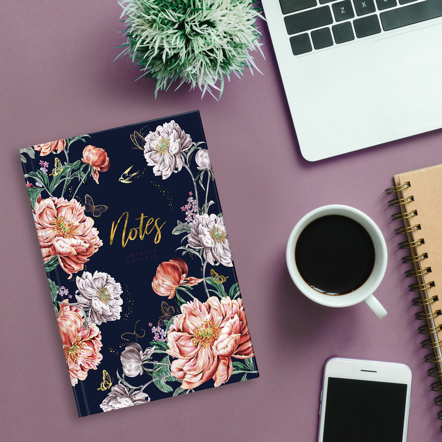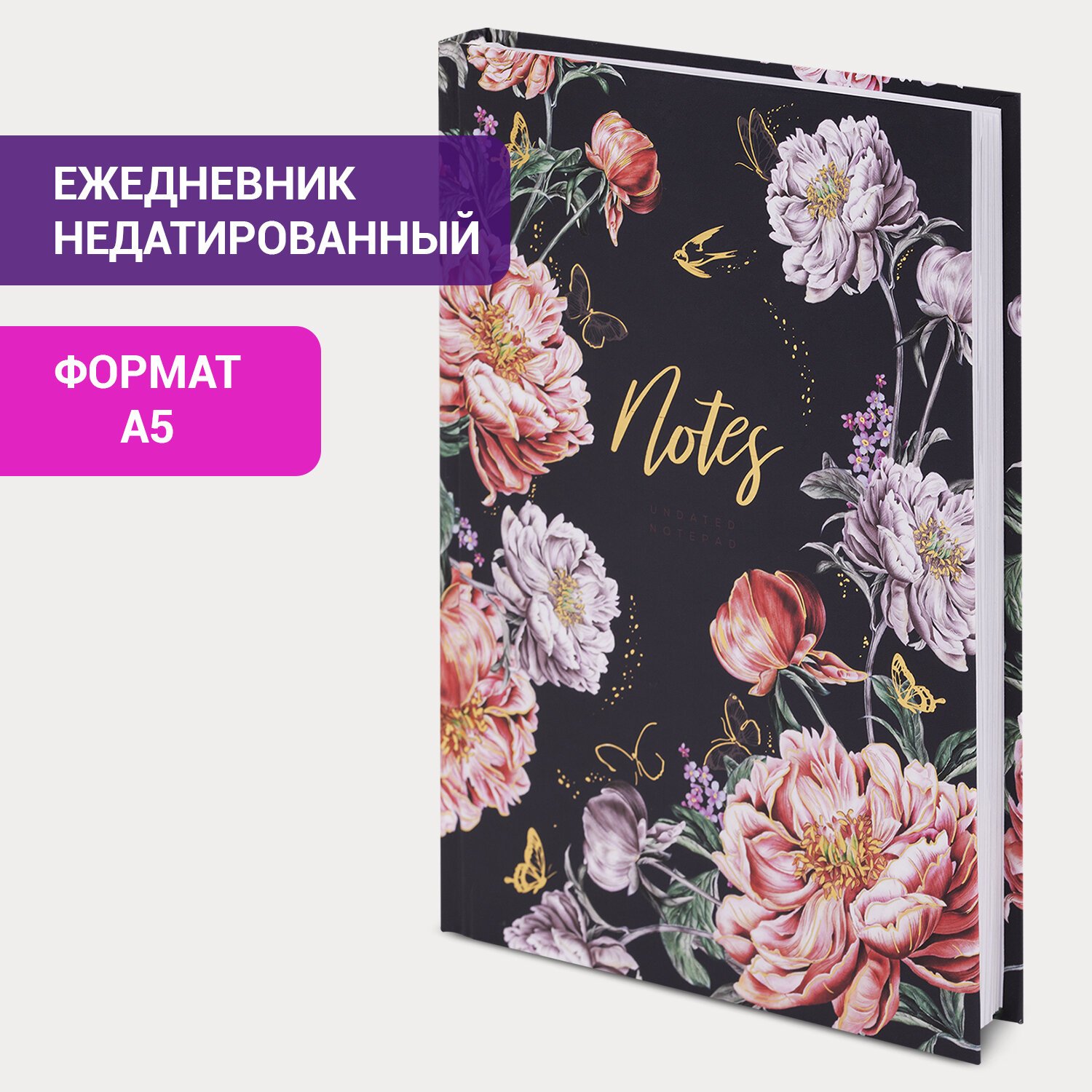 Ежедневник недатированный А5 (145х215 мм), ламинированная обложка с фольгой, 128 л., STAFF, "Flowers", 113521