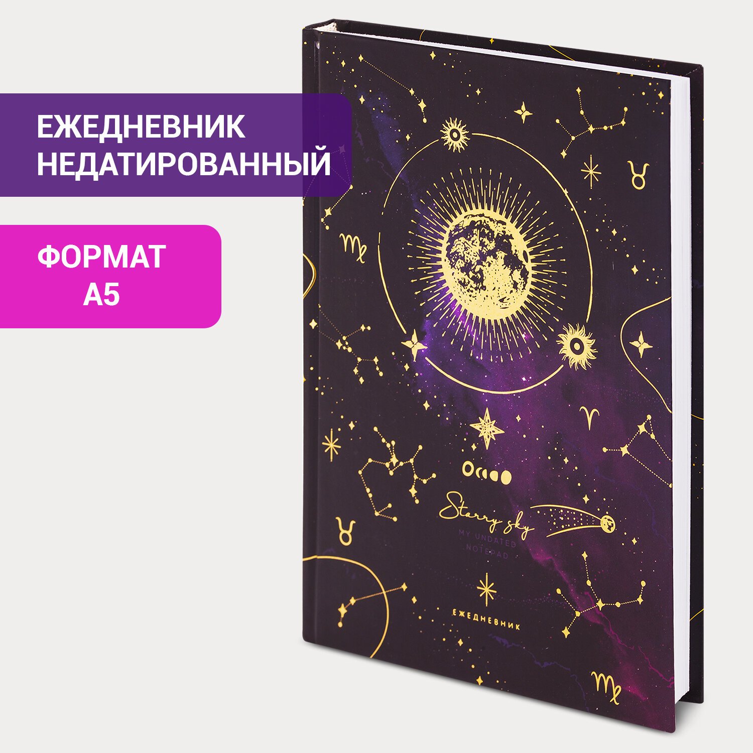 Ежедневник недатированный А5 (145х215 мм), ламинированная обложка с фольгой, 128 л., STAFF, "Starry", 113525