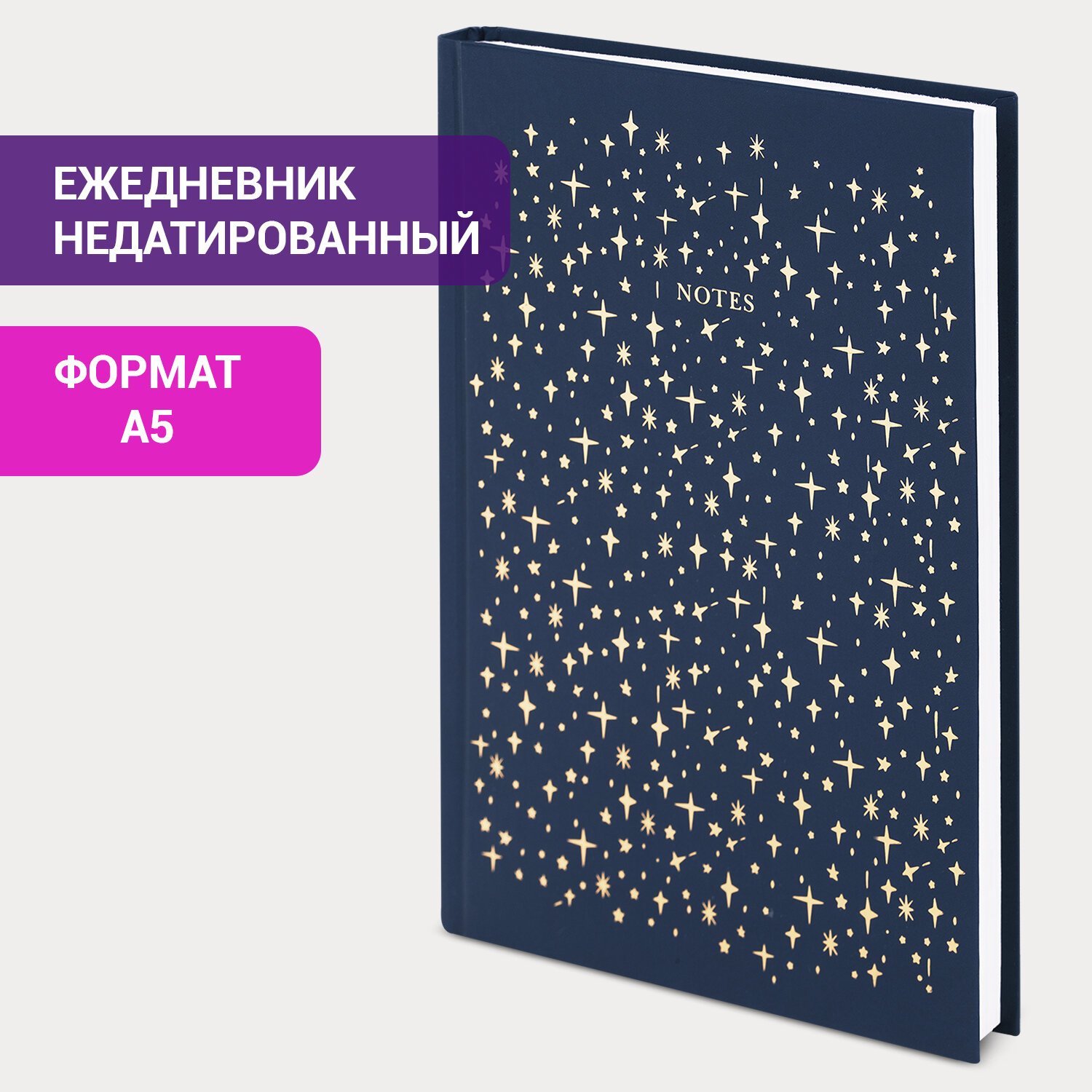 Ежедневник недатированный А5 (145х215 мм), ламинированная обложка с фольгой, 128 л., STAFF, "Stars", 113522