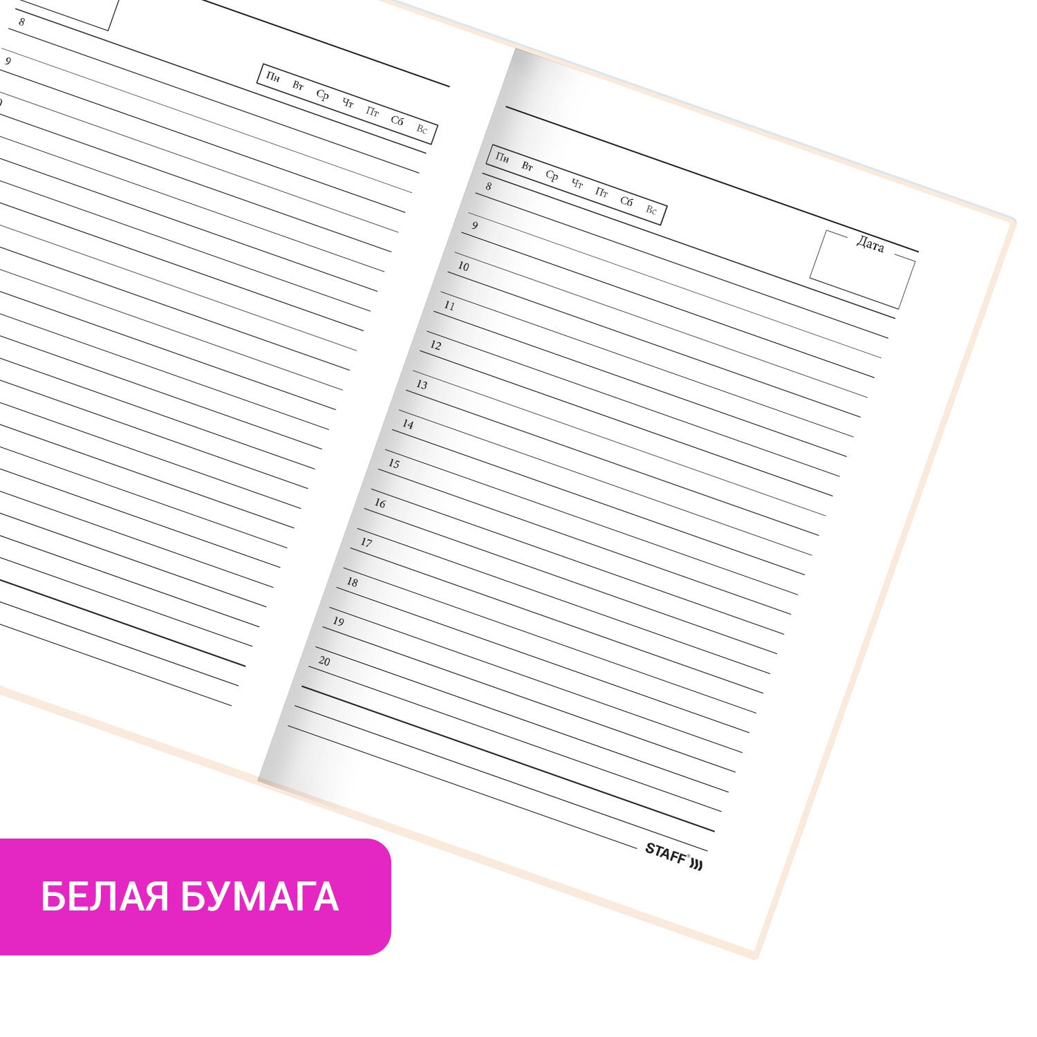 Недатированный ежедневник STAFF в твёрдом книжном переплёте — идеальное сочетание надёжности и практичности для повседневного использования.
