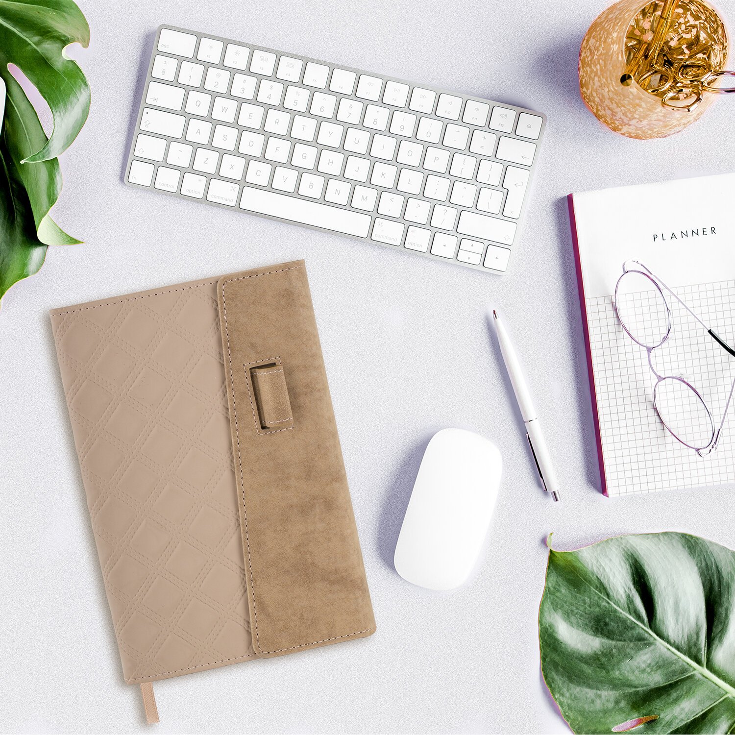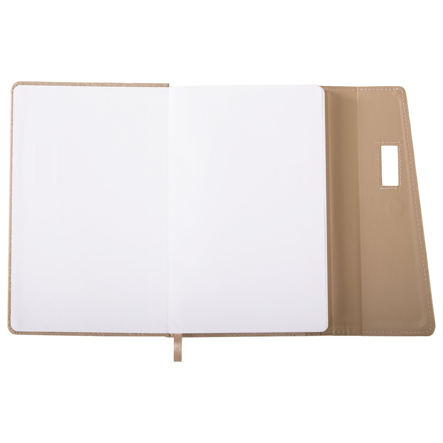 Внутренний блок включает 160 листов белой бумаги плотностью 70 г/м2. Каждая страница имеет перфорированный угол. Благодаря стандартному формату А5 (145х215 мм) ежедневник удобно использовать как в офисе, так и на выездных деловых встречах.