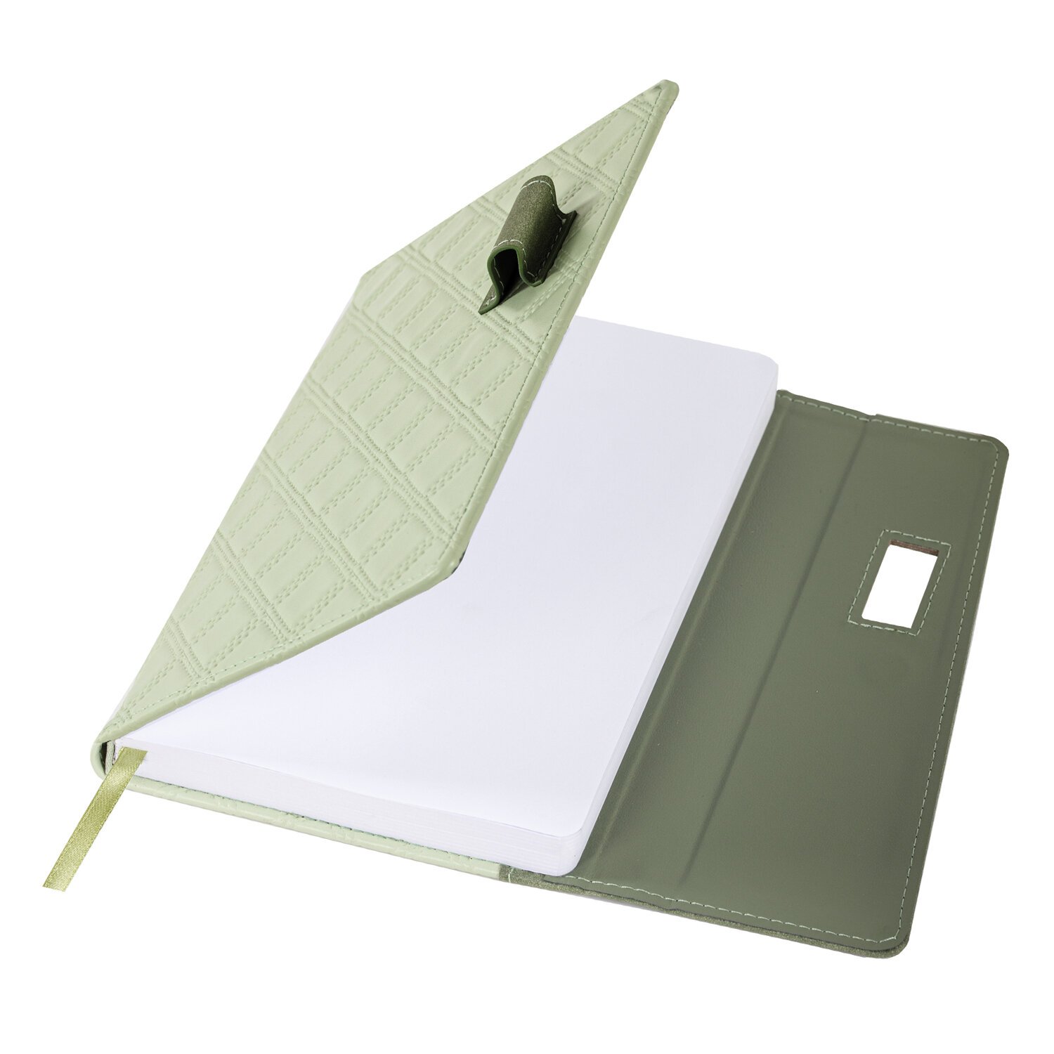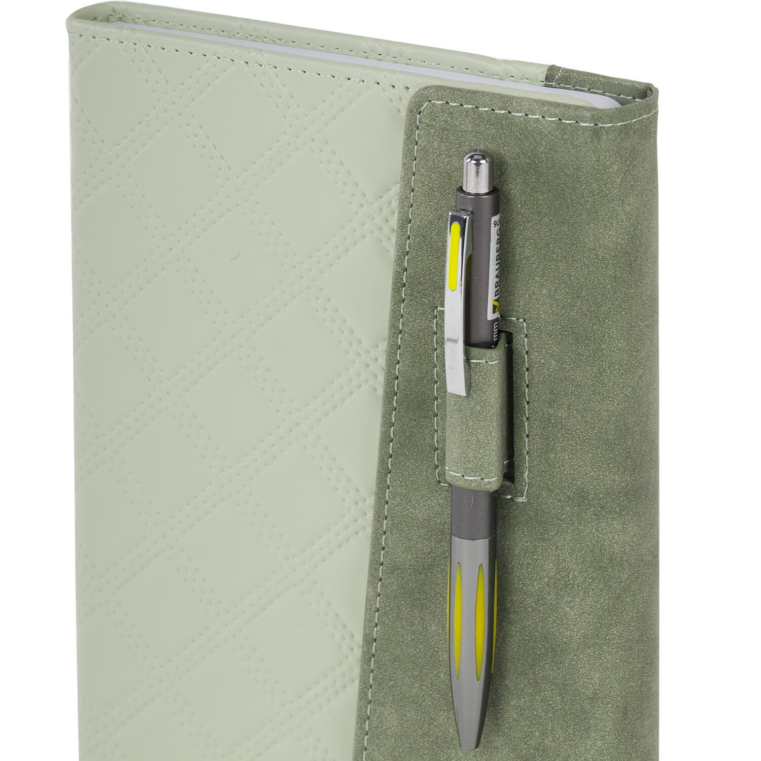 Твердая обложка стилизована под кожу со стеганным рисунком. Подходит для горячего тиснения. Снабжен держателем для ручки и магнитной застежкой, благодаря чему ежедневник не откроется в сумке или портфеле. Уголки у ежедневника закругленные. Дополнением является закладка-ляссе, с помощью которой при необходимости можно быстро открыть нужную страницу. Ежедневник снабжен обширным справочным материалом. В конце имеются 7 страниц для записей и заметок.
