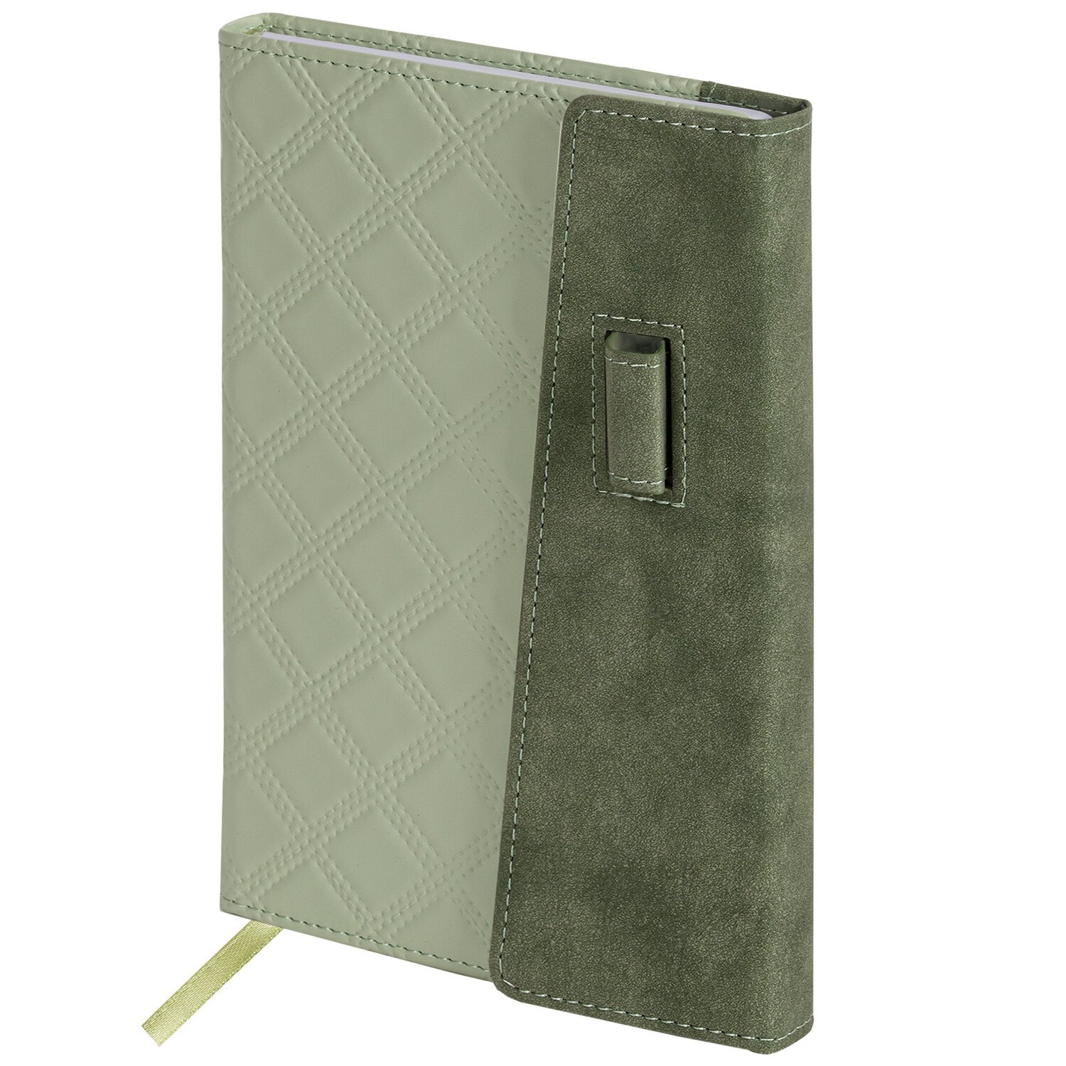 Ежедневник недатированный А5 145х215мм BRAUBERG Stitch, под кожу, магнит, 160л, оливковый, 116588