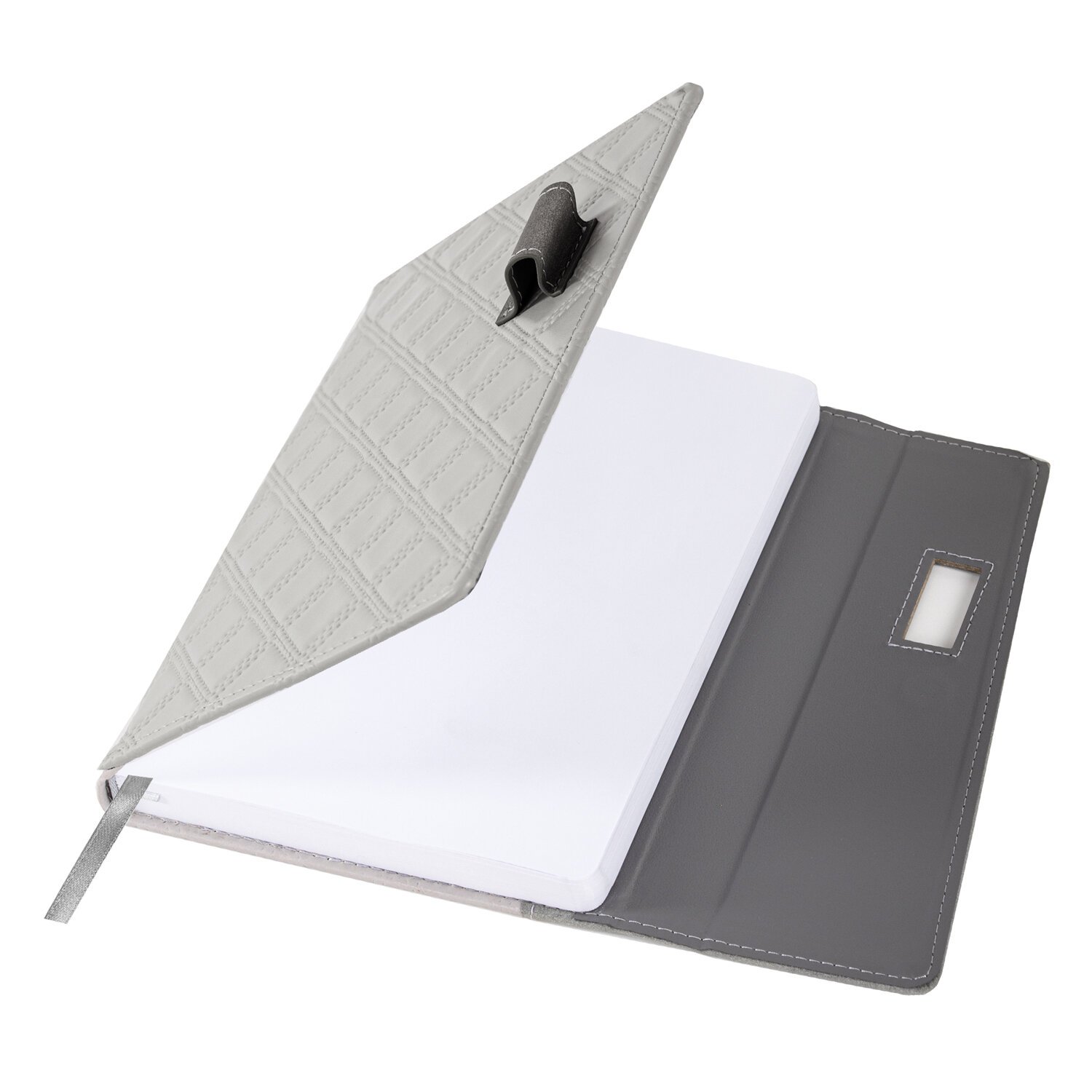 Твердая обложка стилизована под кожу со стеганным рисунком. Подходит для горячего тиснения. Снабжен держателем для ручки и магнитной застежкой, благодаря чему ежедневник не откроется в сумке или портфеле. Уголки у ежедневника закругленные. Дополнением является закладка-ляссе, с помощью которой при необходимости можно быстро открыть нужную страницу. Ежедневник снабжен обширным справочным материалом. В конце имеются 7 страниц для записей и заметок.