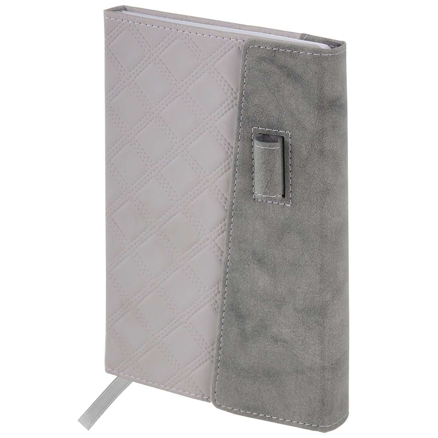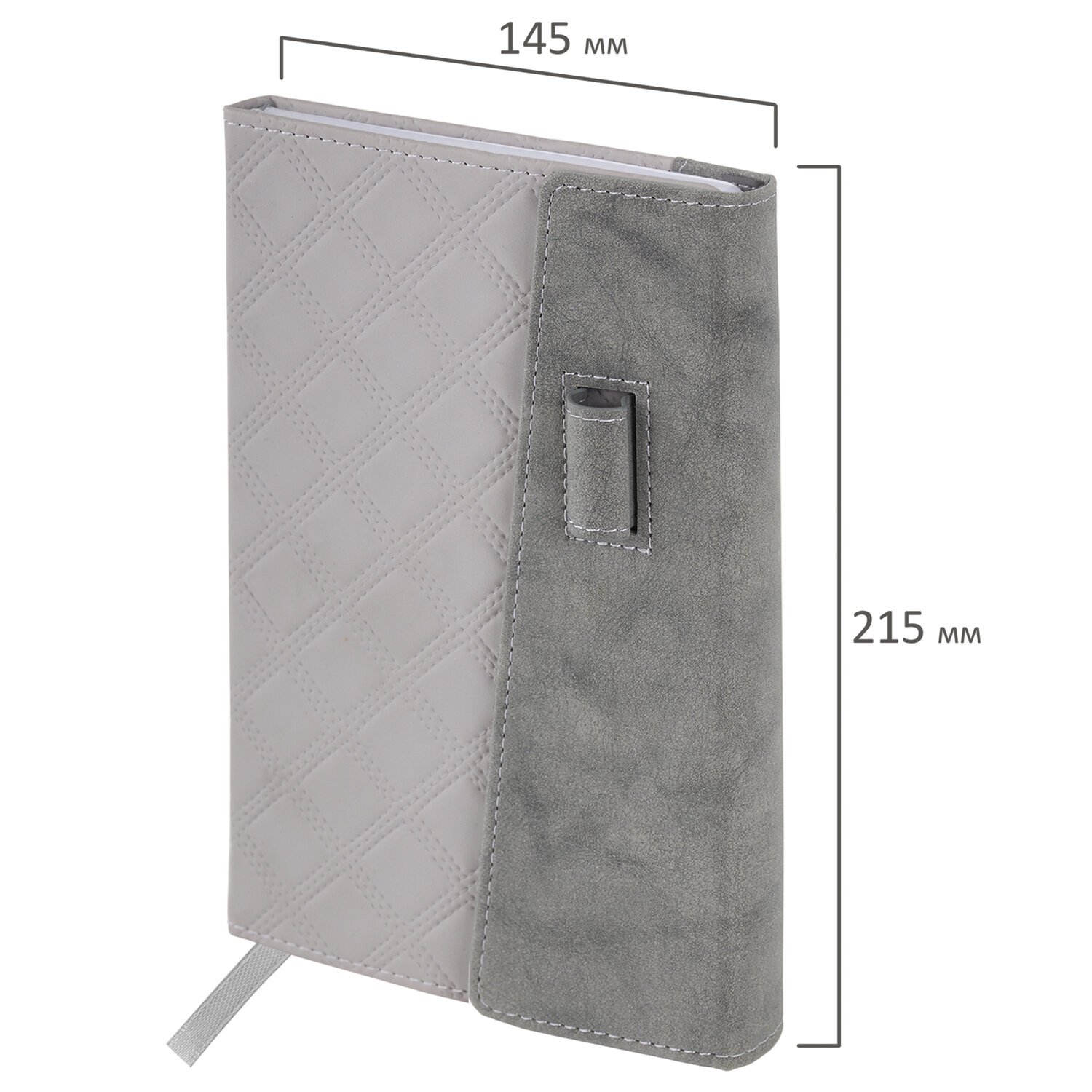 Ежедневник недатированный А5 145х215мм BRAUBERG Stitch, под кожу, магнит, 160л, серый, 116591