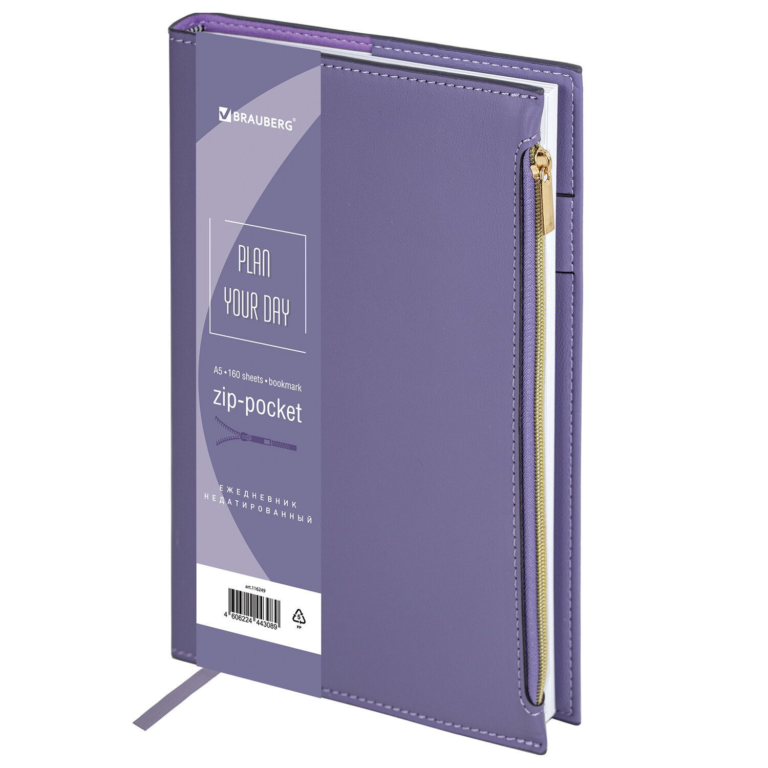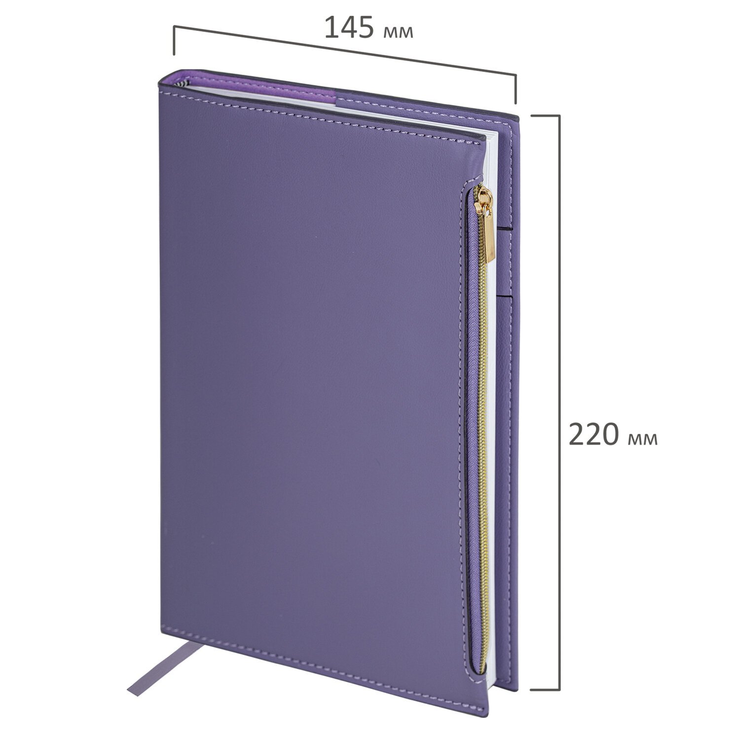 Ежедневник недатированный А5 145х220мм, BRAUBERG Zipline, под кожу, карман-молния, 160л, фиолетовый, 116249