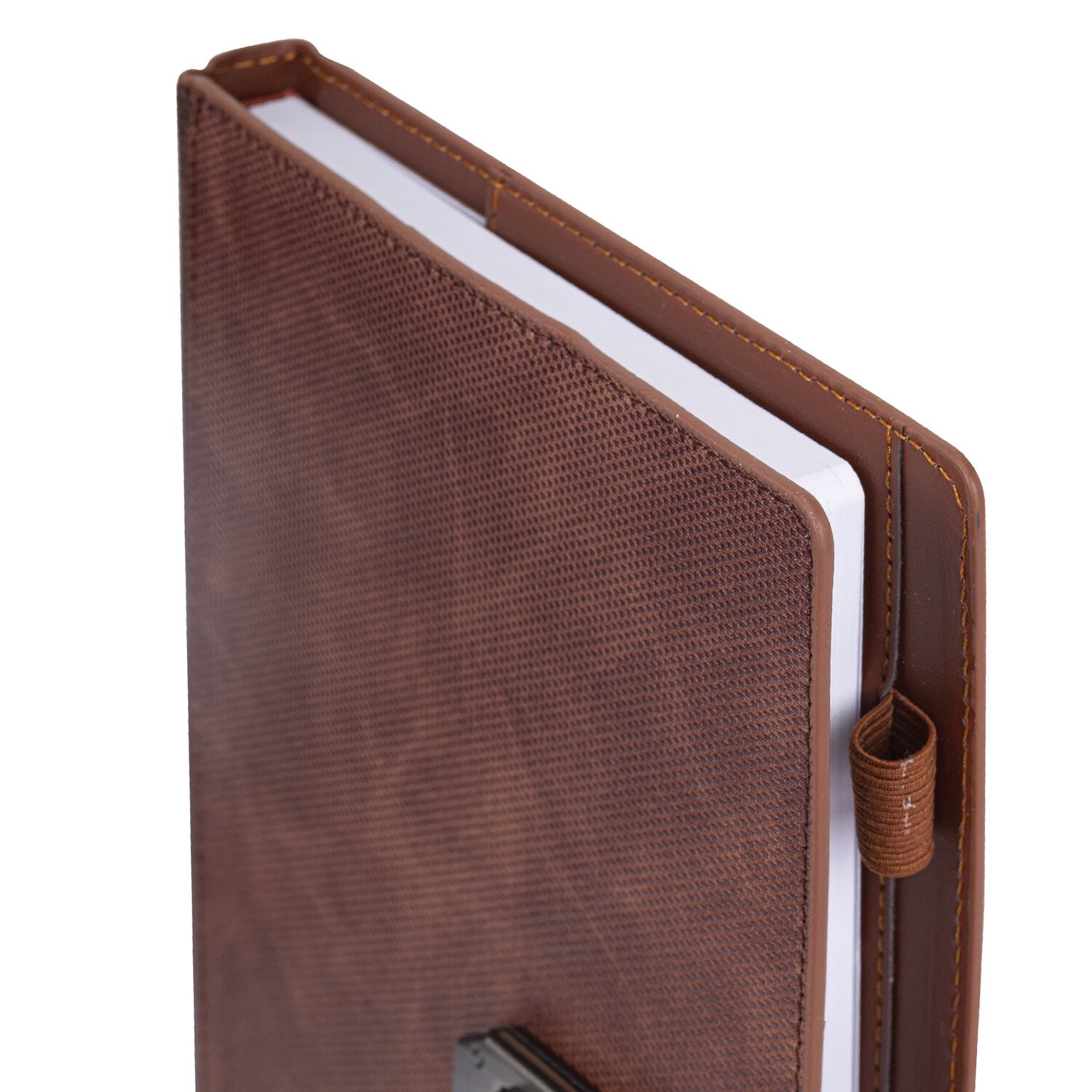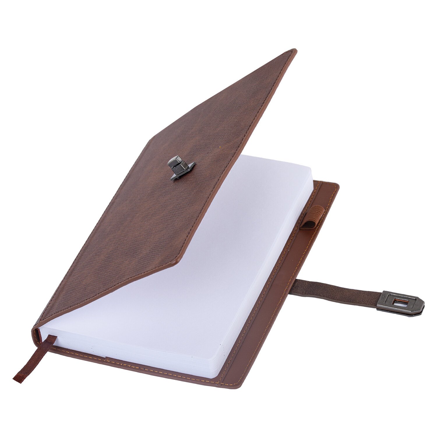 Твердая обложка стилизована под текстурную кожу. Материал обложки подходит для горячего тиснения. Ежедневник фиксируется застежкой-ремешком, поэтому не откроется в сумке или портфеле и страницы не помнутся.