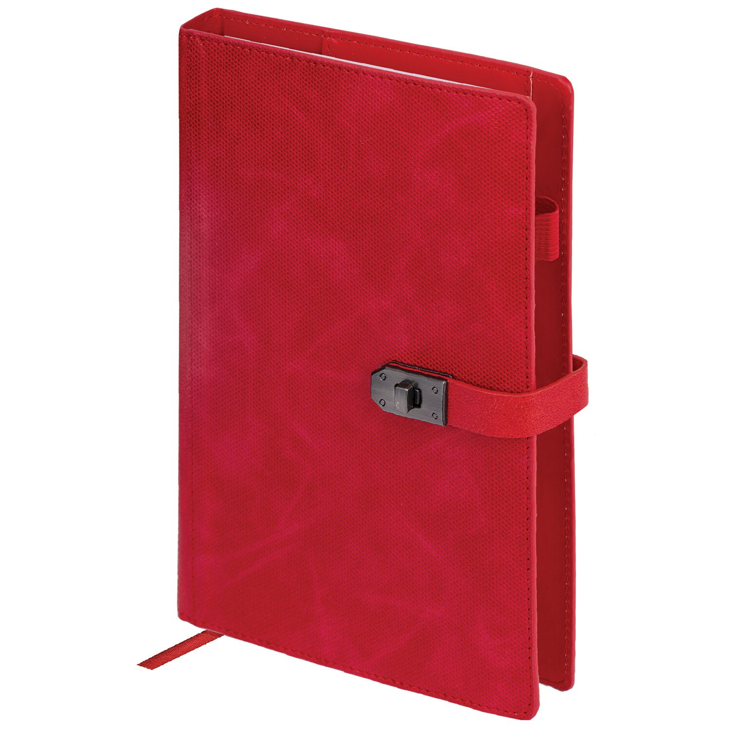 Твердая обложка стилизована под текстурную кожу. Материал обложки подходит для горячего тиснения. Ежедневник фиксируется застежкой-ремешком, поэтому не откроется в сумке или портфеле и страницы не помнутся.