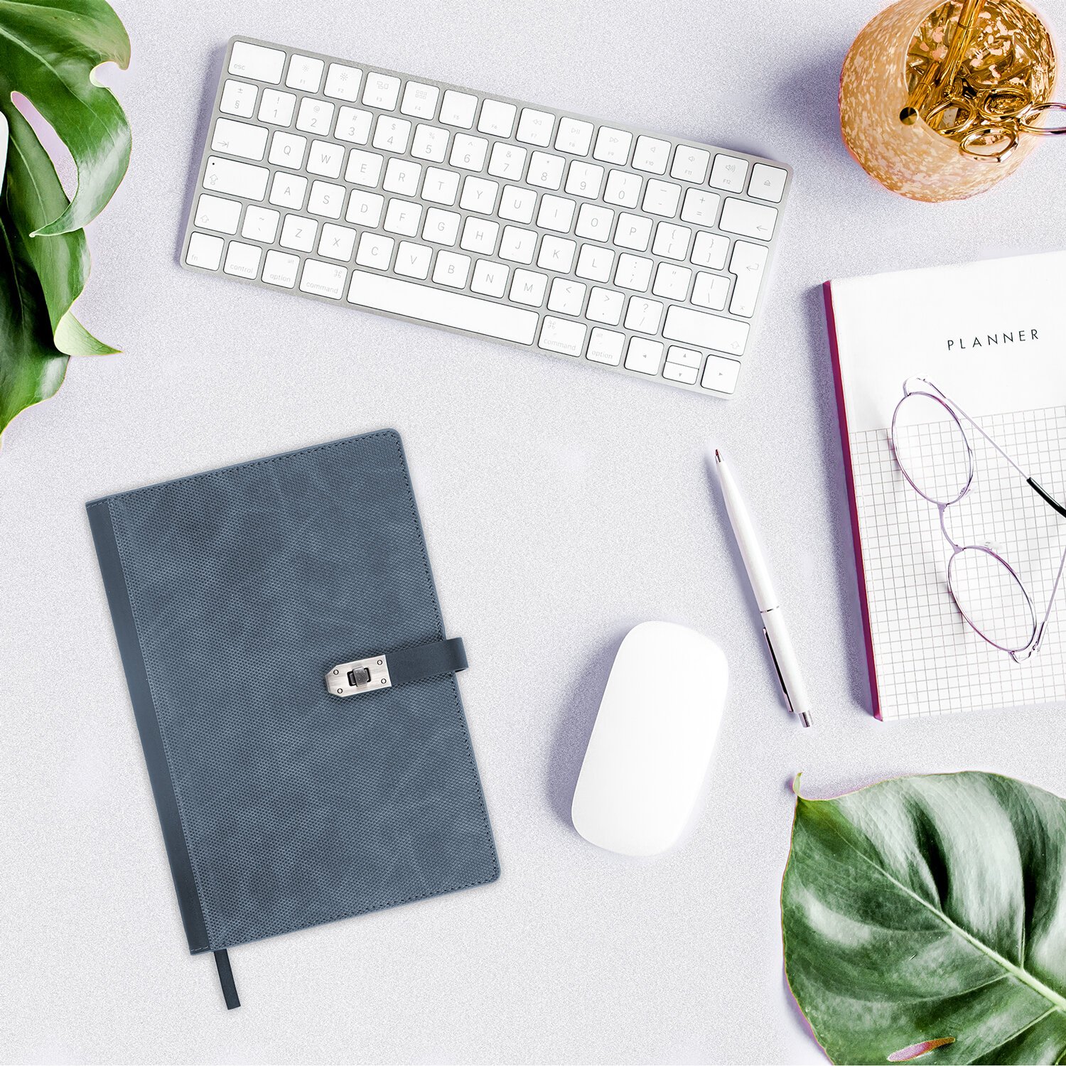 Внутренний блок включает 160 листов белой бумаги плотностью 70 г/м2. Каждая страничка имеет перфорированный угол. Благодаря классическому формату А5 (152х220 мм) ежедневник удобно использовать как в офисе, так и на выездных деловых встречах.