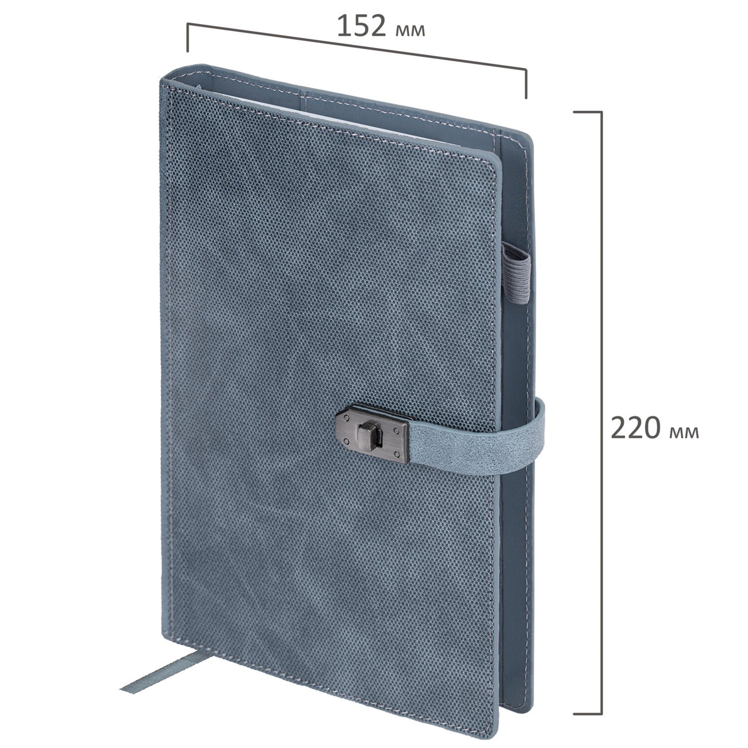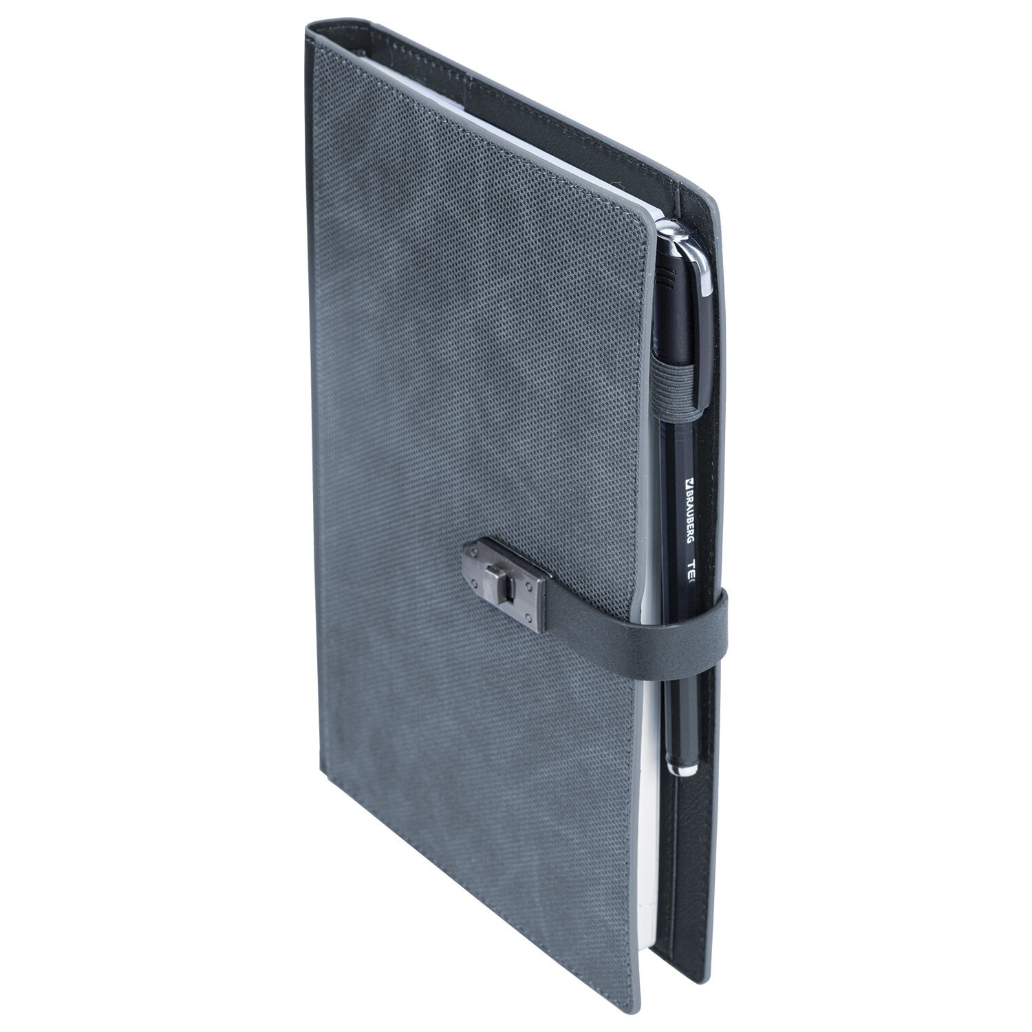 Ежедневник недатированный А5 152х220мм BRAUBERG "Sirius", под кожу, застежка 160л, серый, 116214