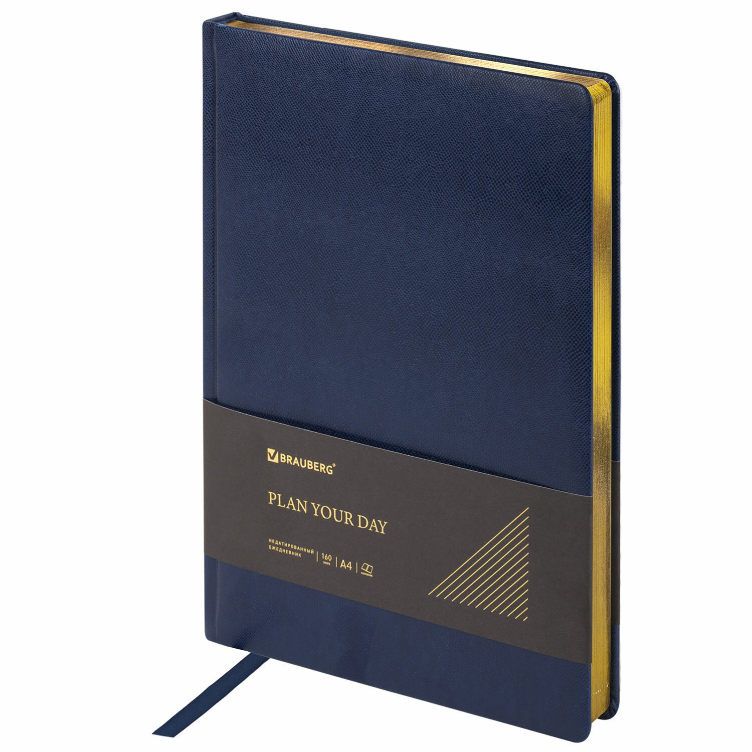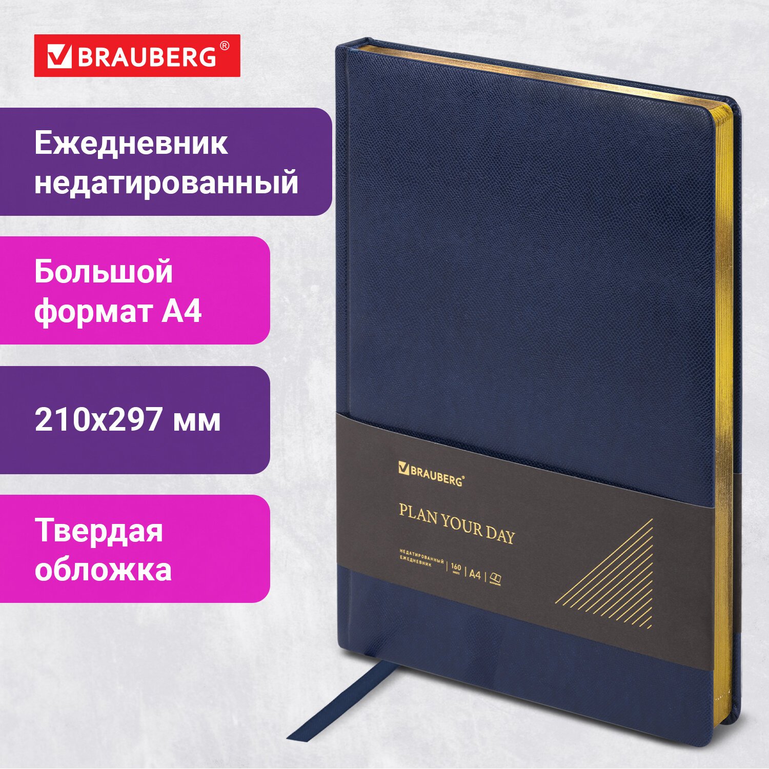 Ежедневник недатированный БОЛЬШОЙ ФОРМАТ 210х297 мм А4, BRAUBERG "Status", 160 л., темно-синий, 113359