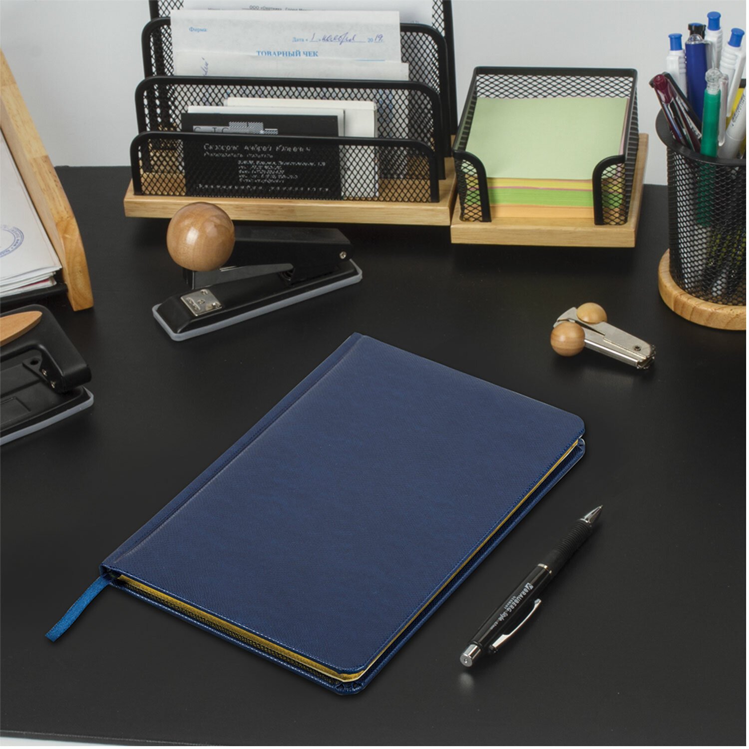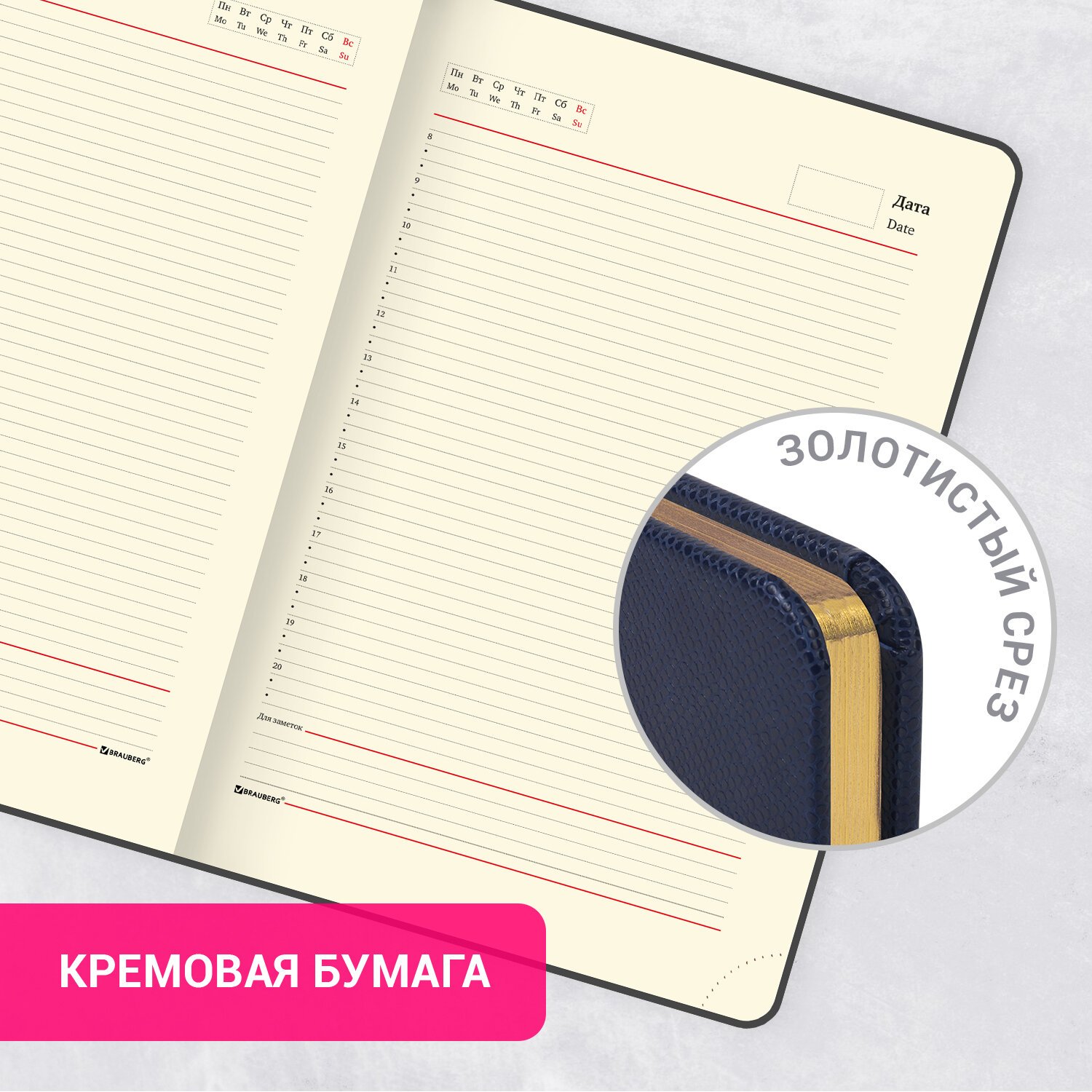 Ежедневник недатированный БОЛЬШОЙ ФОРМАТ (175х247 мм) B5, BRAUBERG "Imperial", под гладкую кожу, 160 л, кремовый блок, темно-синий, 124971