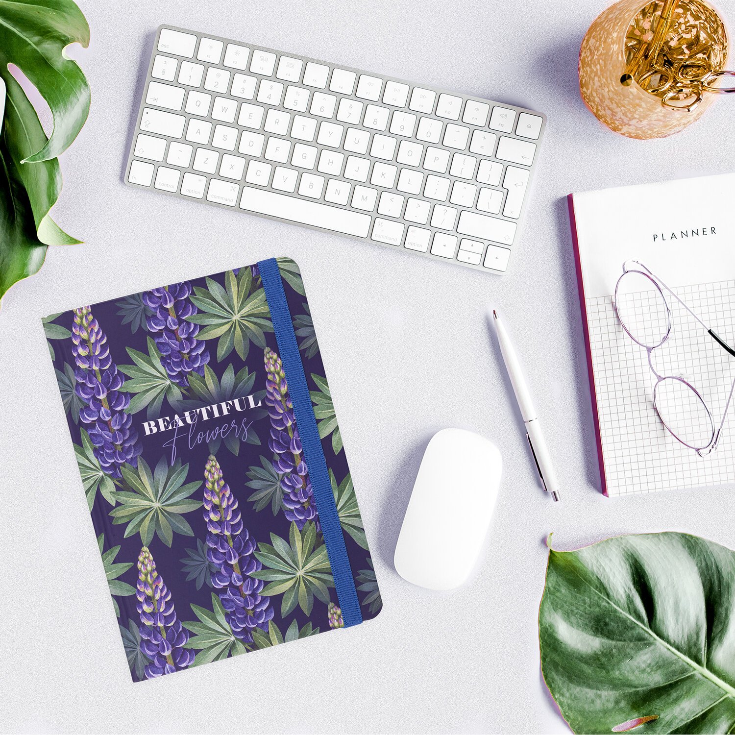 Ежедневник недатированный с резинкой А5 (145х203 мм), BRAUBERG, твердый, 128 л., "Beautiful Flowers", 114558